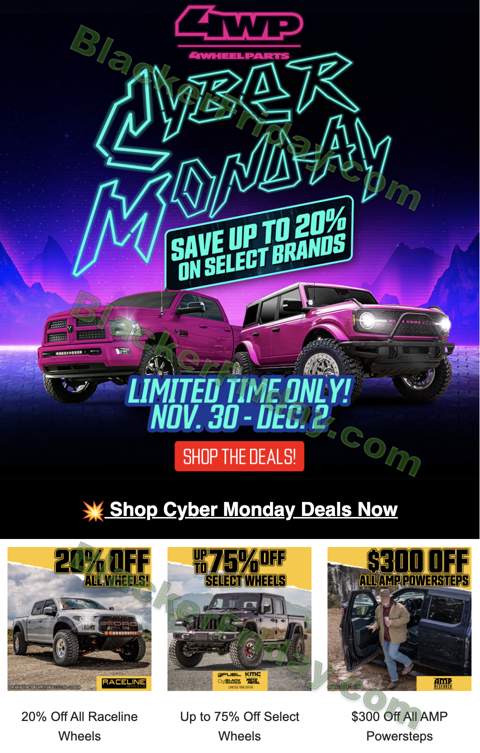 You’ll find an archive of 4 Wheel Parts’ last few Cyber Monday ad scans below — Enjoy!