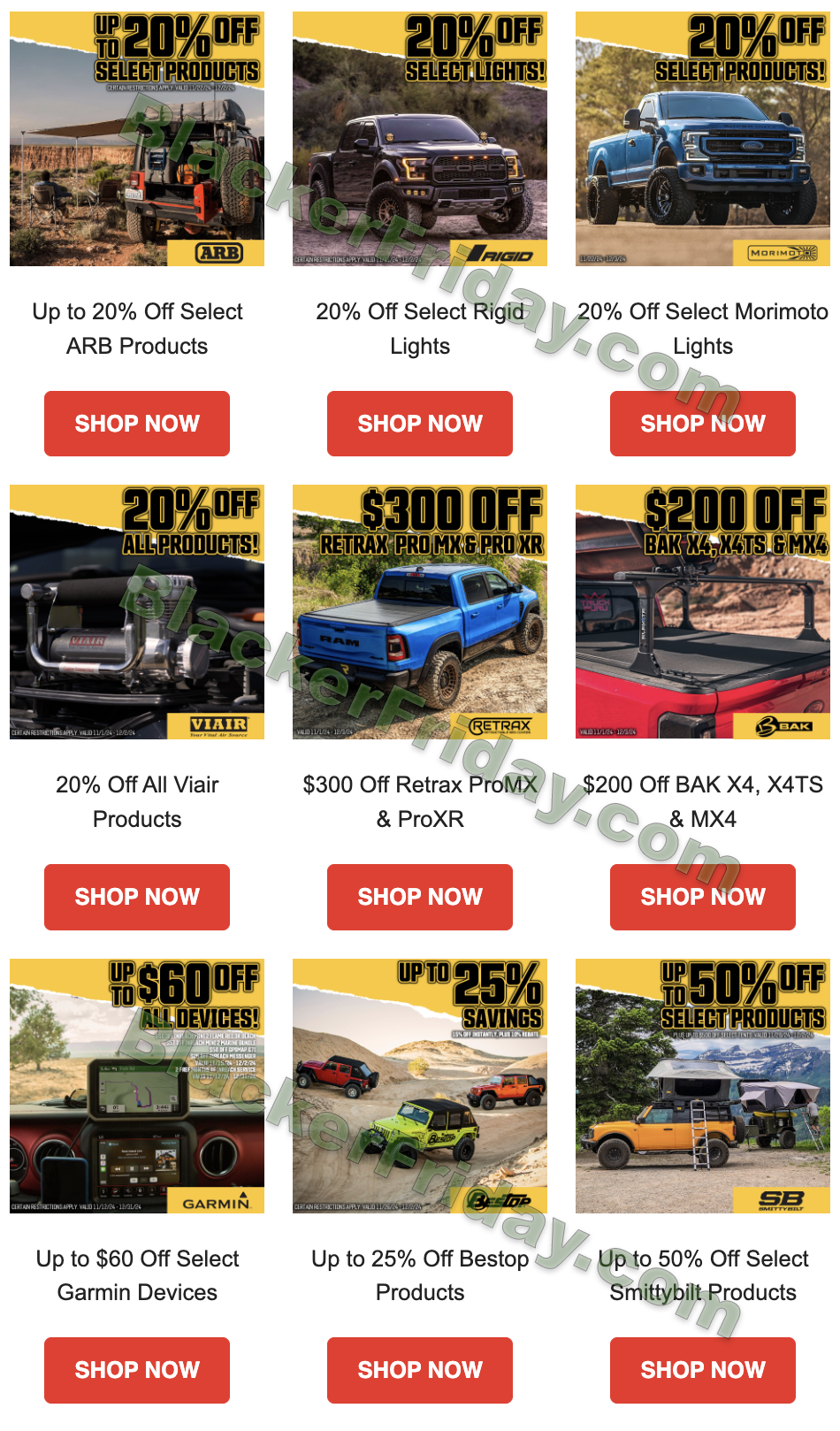 Predicted start: As early as Friday, November 14, 2025 (that’s 2 weeks before Back Friday), both in-stores and at 4wheelparts.com.