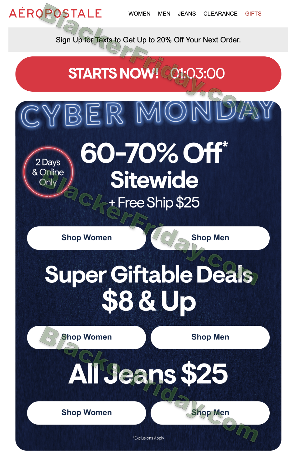 What do you plan on getting at Aeropostale’s Cyber Monday sale this year? Let us know in the comments section.