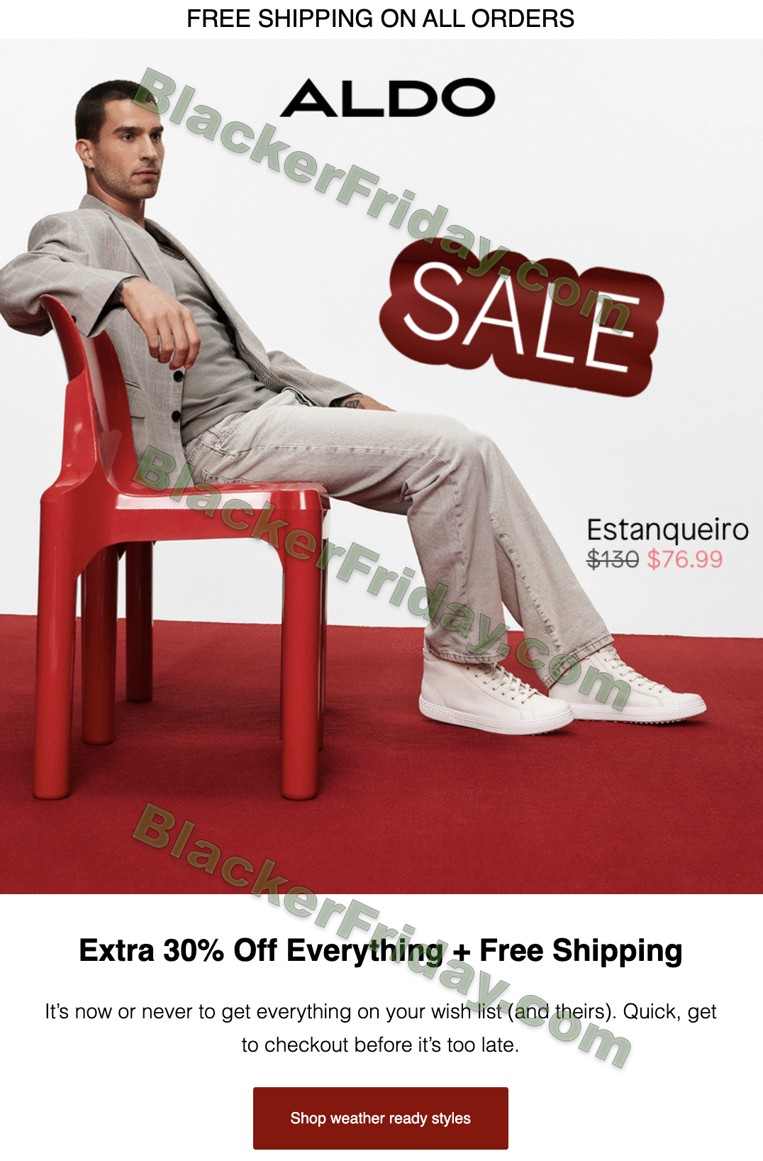 Based on Aldo’s past schedules, the Black Friday 2025 sale is expected to start on Friday, November 21, 2025, almost a full week before Thanksgiving, both in-stores and at aldoshoes.com. It will likely run through Wednesday, December 3, 2025 at 11:59 PM Eastern Time, which is two days after Cyber Monday.