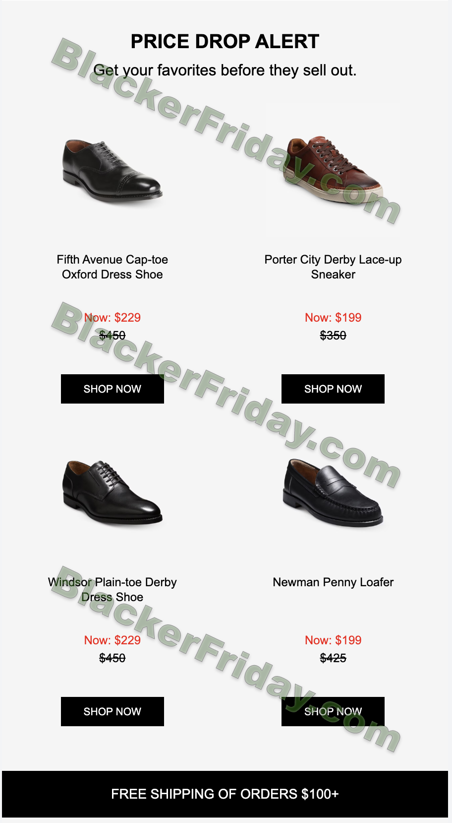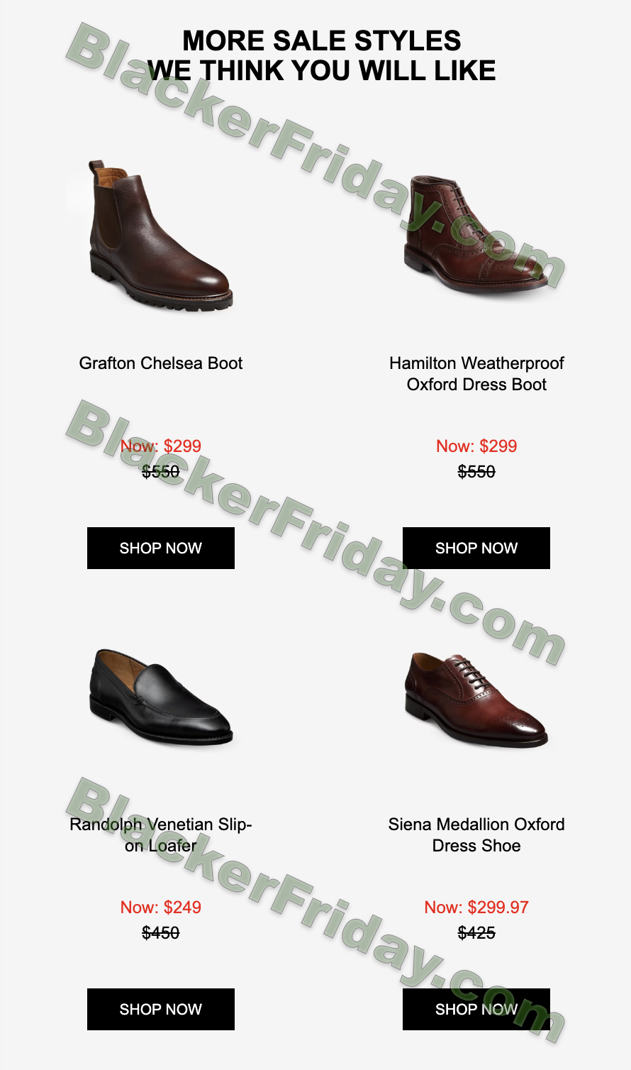 For cooler weather or a more rugged look, select Allen Edmonds boots start at $299. Featured deals include: