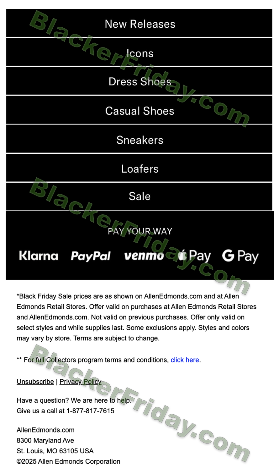 Allen Edmonds has maintained a consistent Black Friday schedule in recent years, and 2025 is no exception: