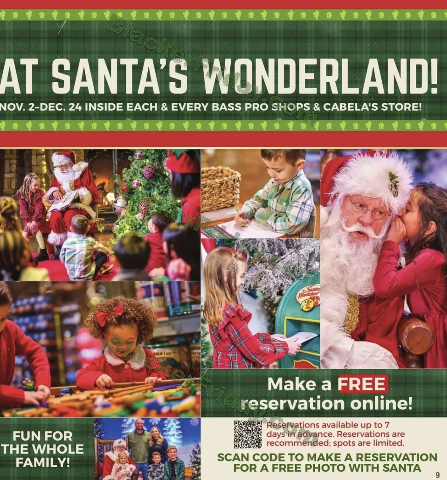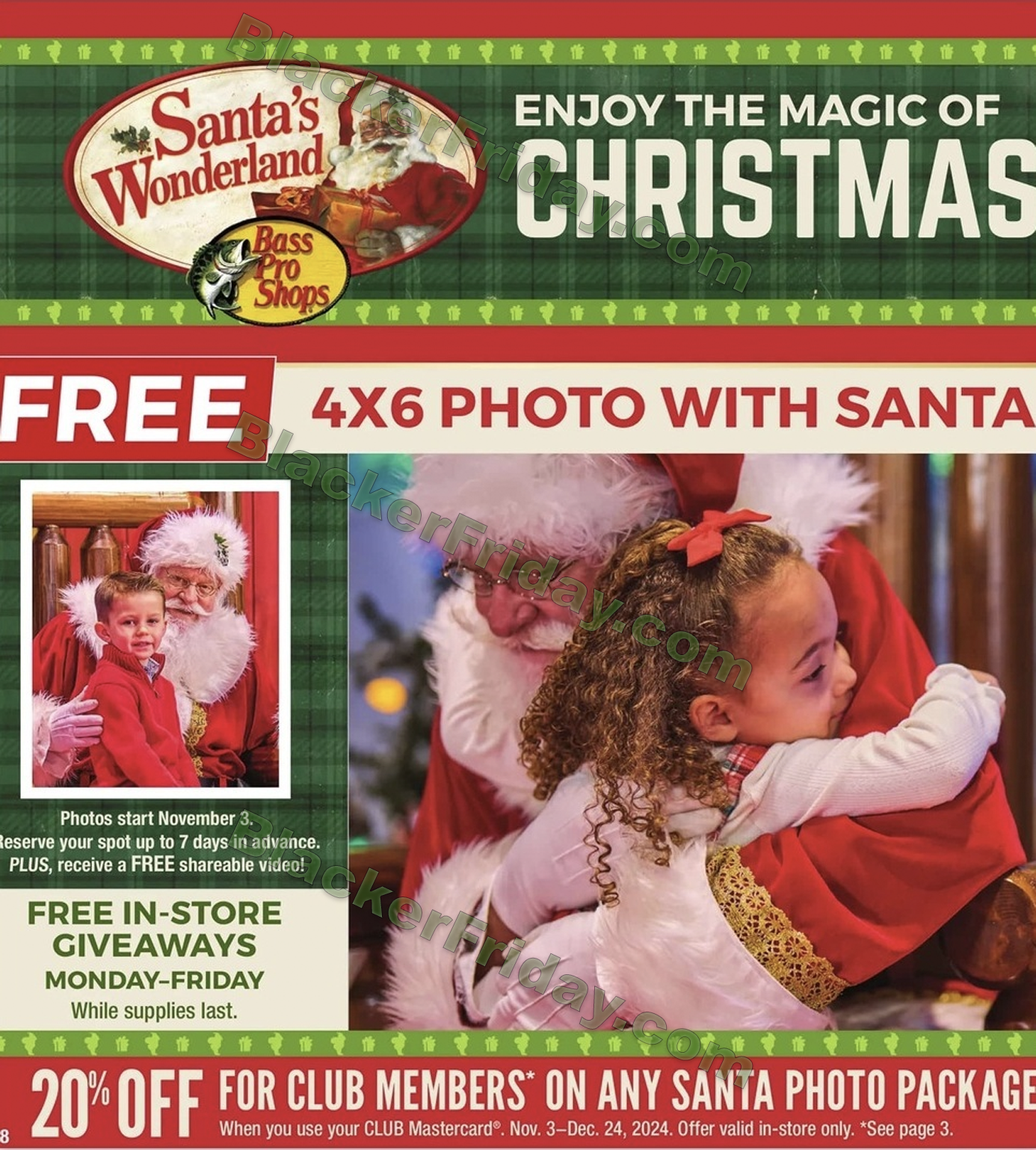 Throughout November—including Black Friday weekend—Cabela’s and Bass Pro Shops is hosting free photos with Santa. Reservations can usually be made online up to 7 days in advance. Club Members may get a discount on photo packages.