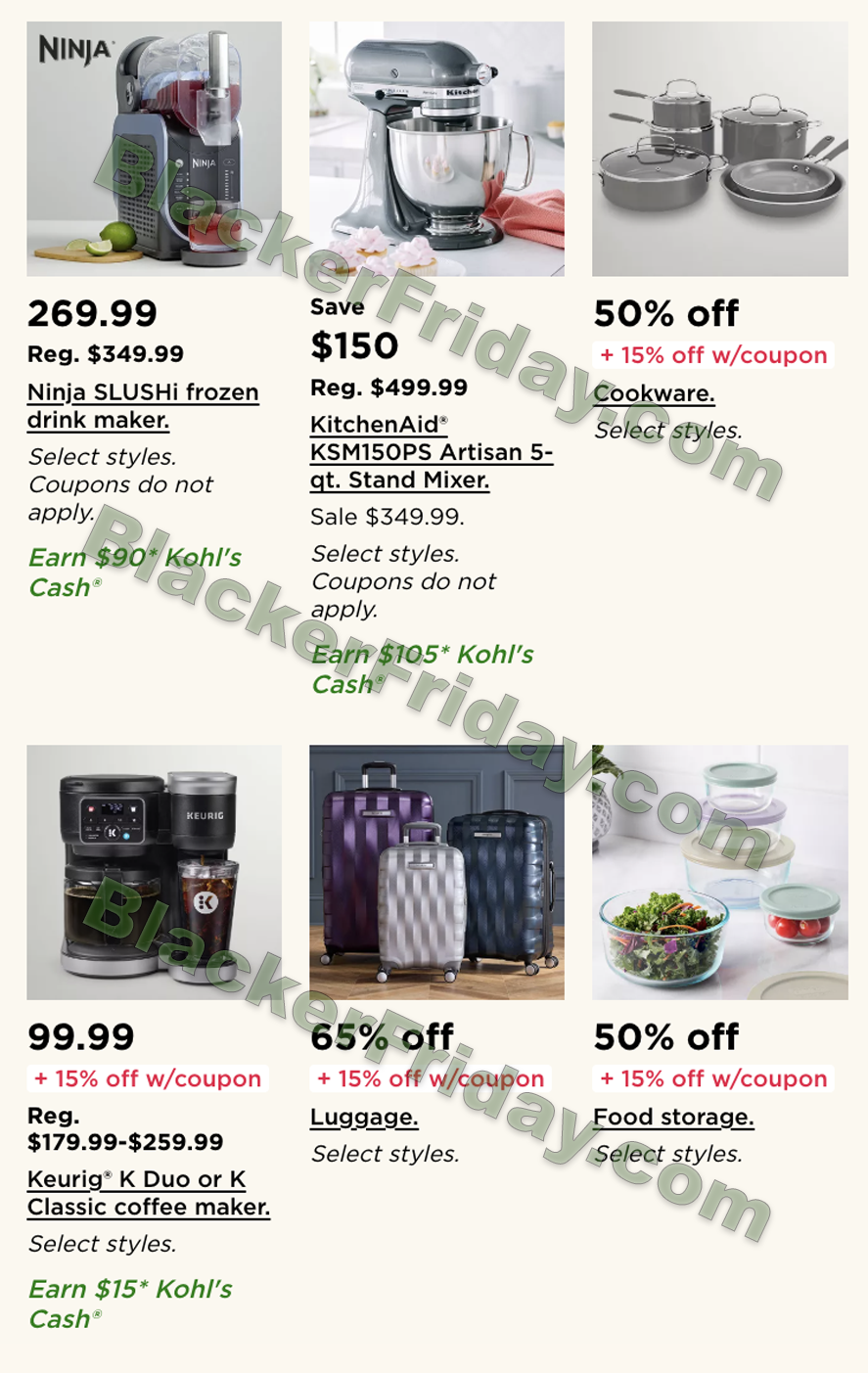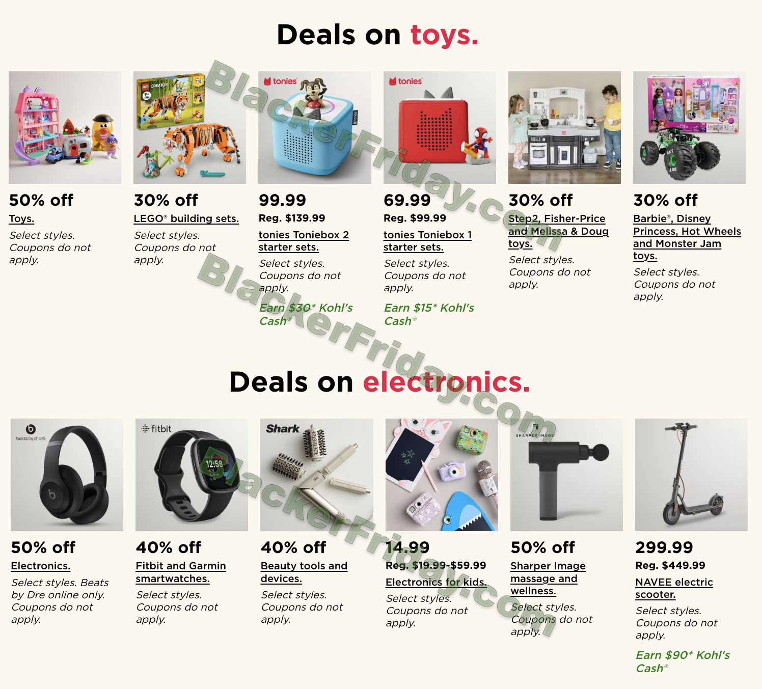 During the main Black Friday event, Kohl’s offers discounts in the range of 30% to 60% off, depending on the item. Electronics, kitchen appliances, home goods, and toys often see the steepest cuts.