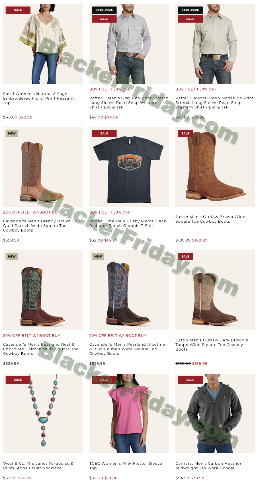 - Sitewide discounts (30–40% off most items)
