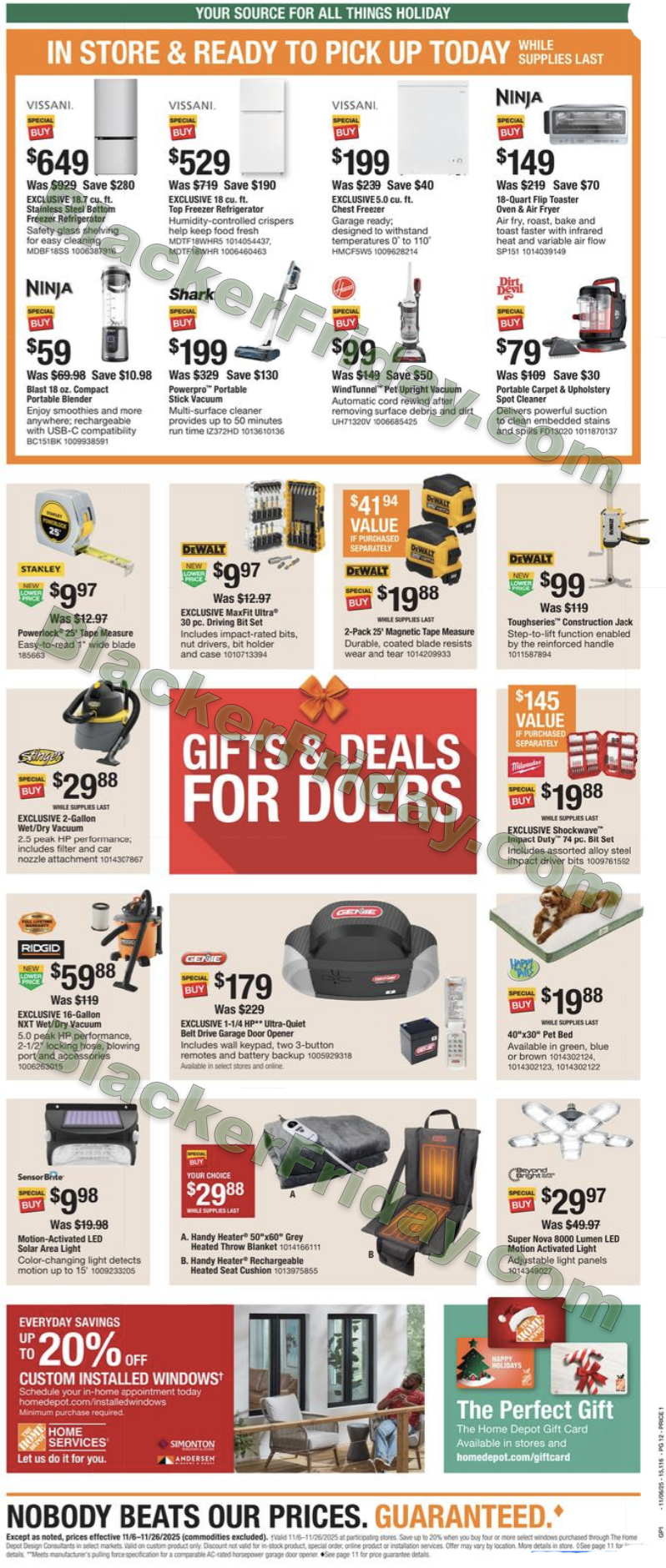 How did Home Depot’s Black Friday ad look like last year? What were some of the featured doorbuster deals on tools, supplies and appliances? Follow the links below to view the archived ad scans.