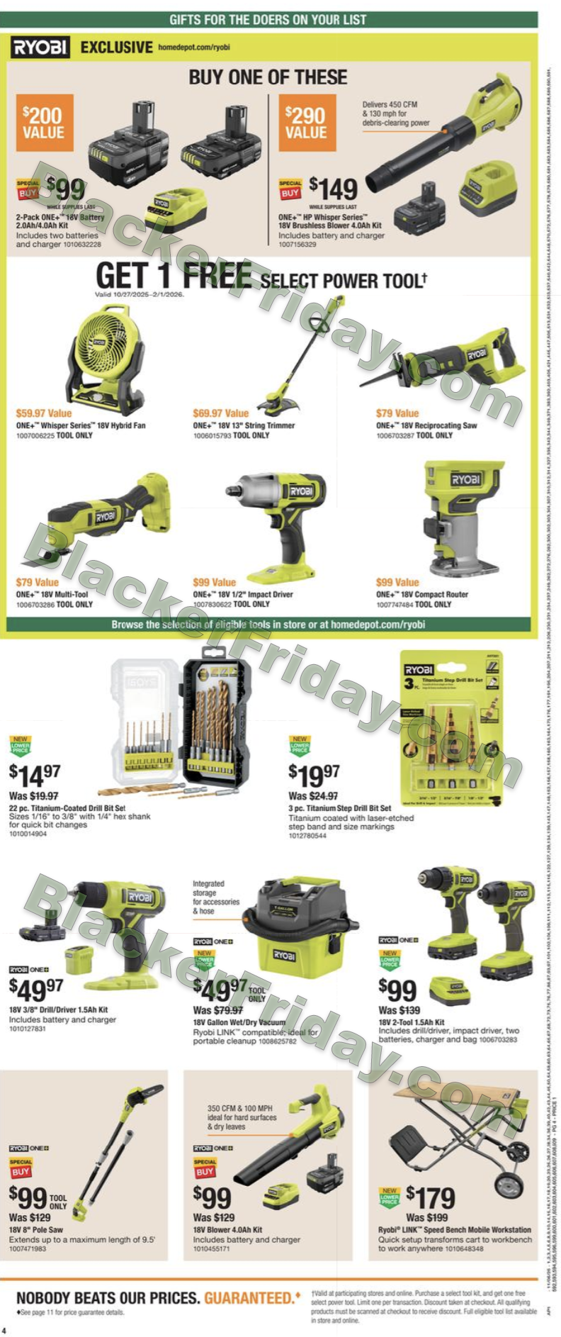 This category is a Black Friday staple at Home Depot. Expect big discounts on brands like Milwaukee, Ryobi, and Ridgid. In 2024, shoppers saw: