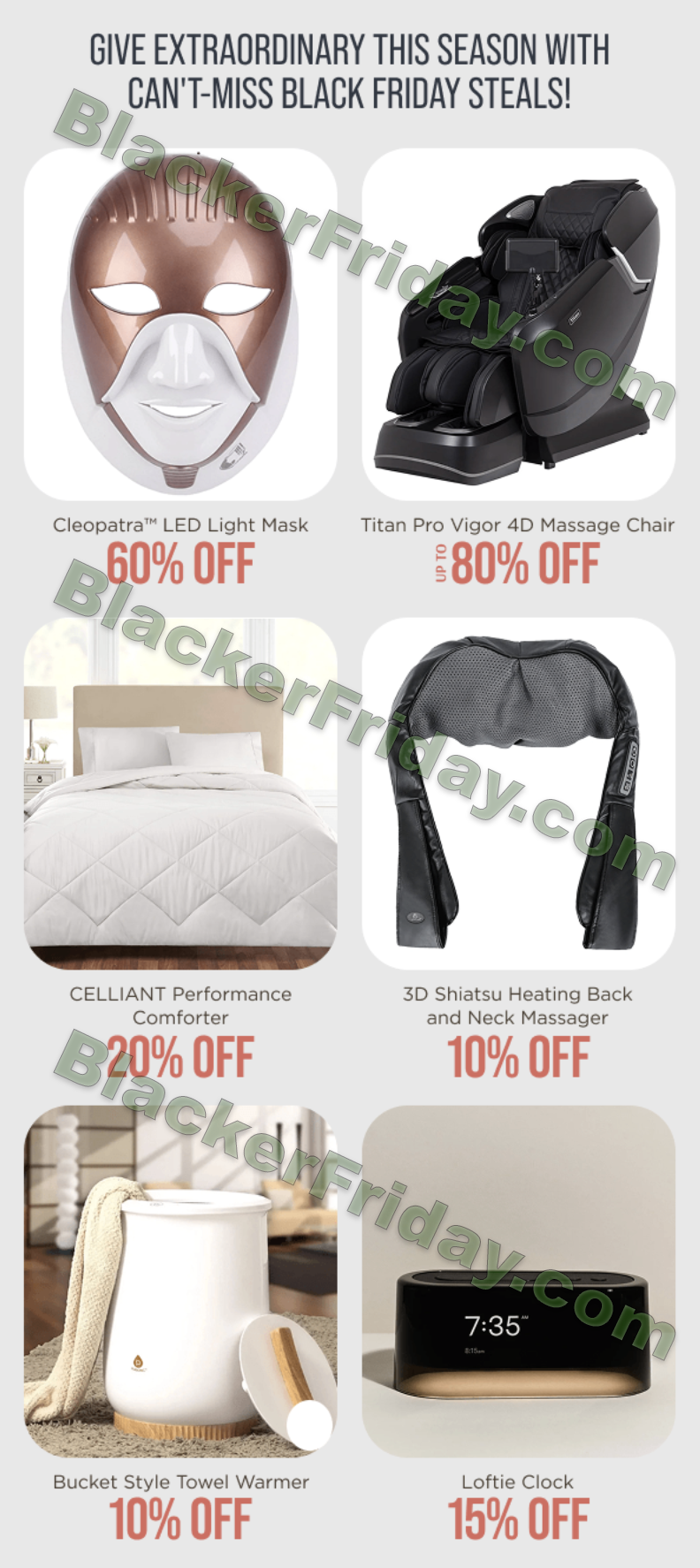 Home & Sleep Products: Toward home comfort, you’ll find heated blankets, towel warmers, and sleep accessories with up to 20% off.