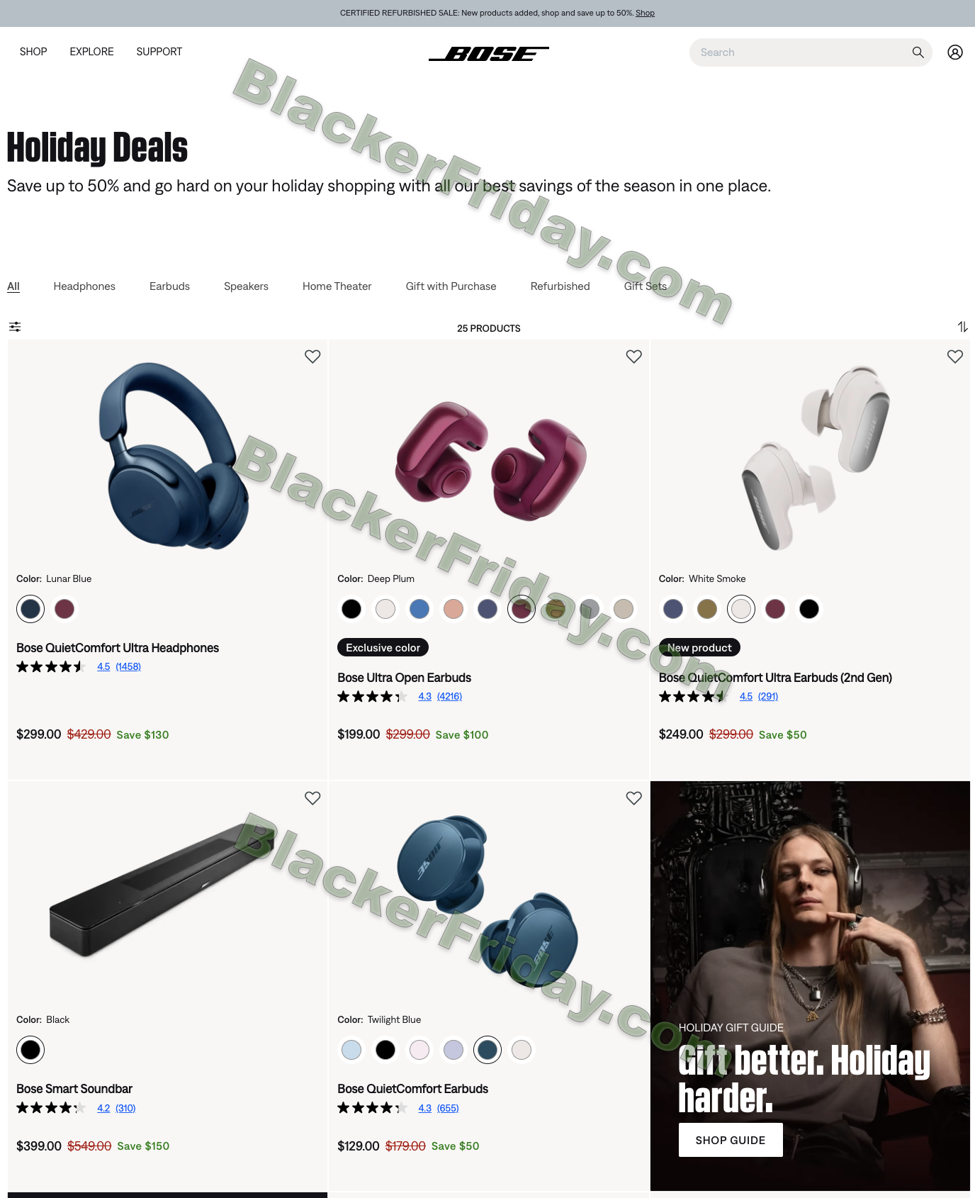 Updated on Friday, November 14, 2025: Bose has officially launched its Holiday Deals event (effectively the Black Friday 2025 sale) a two full weeks before the long weekend. This year they are offering discounts of up to 50% off across headphones, earbuds, speakers, and refurbished home audio products at bose.com.