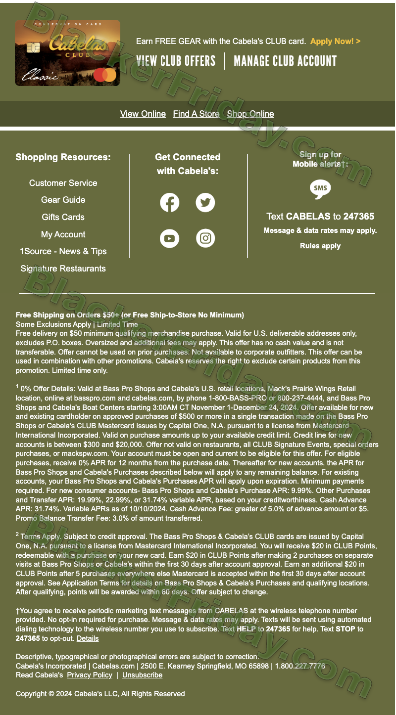 Cabela’s Club Members usually get special financing such as 0% interest for 12 months on purchases of $500 or more (subject to approval and terms).