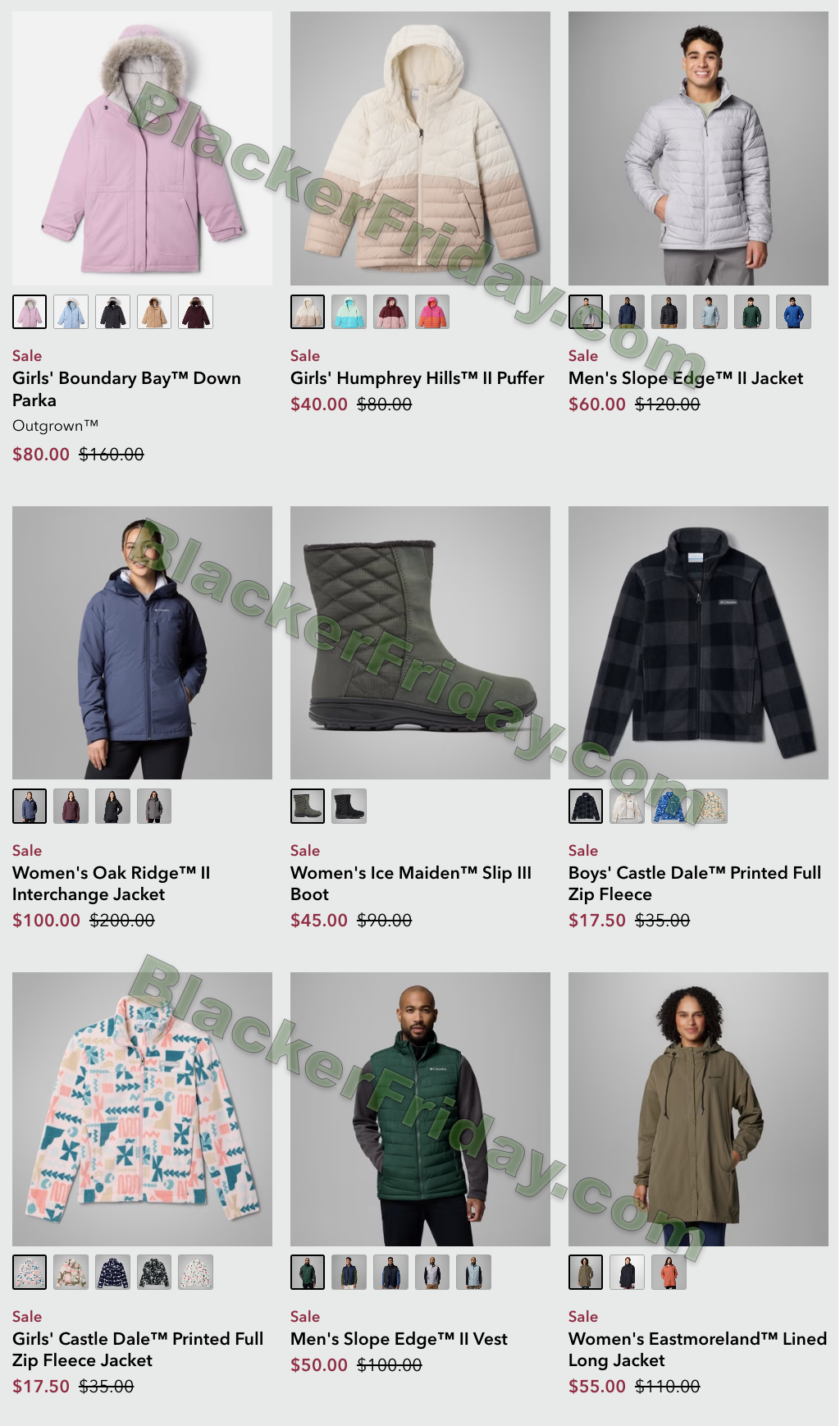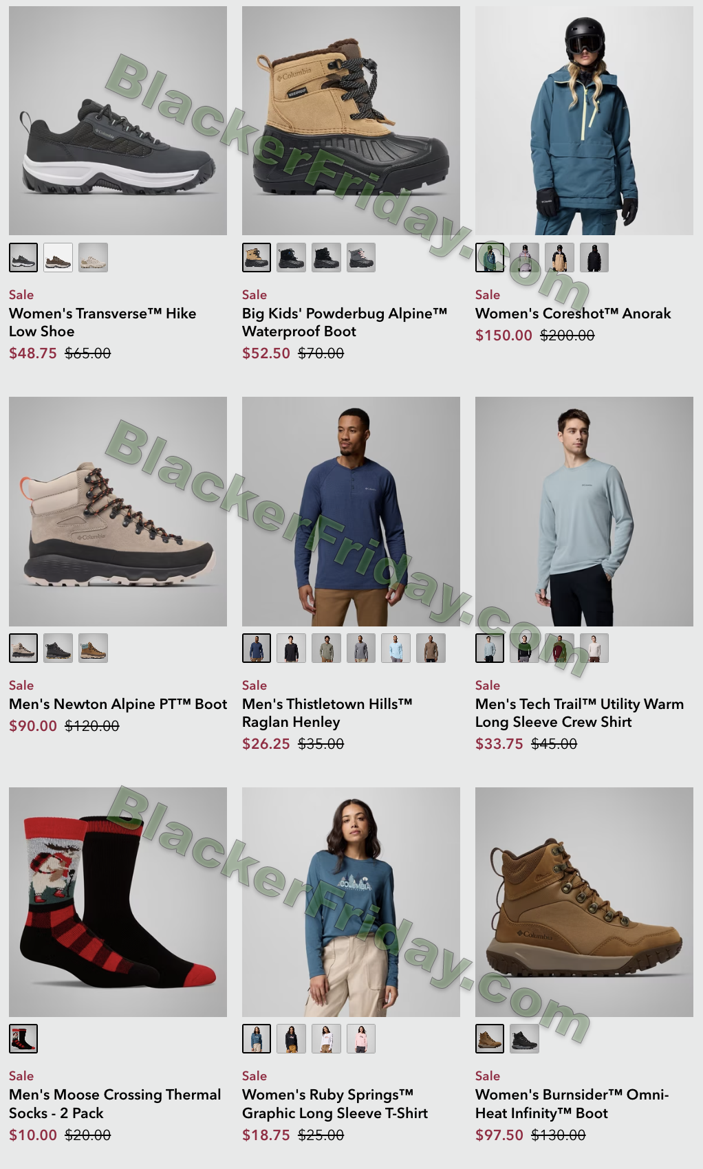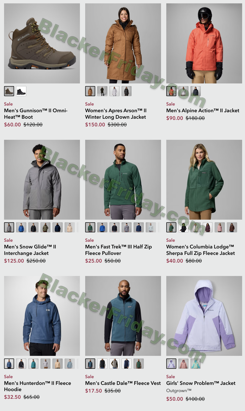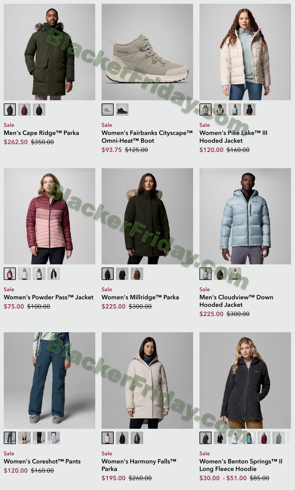 Columbia typically uses the following Black Friday format: