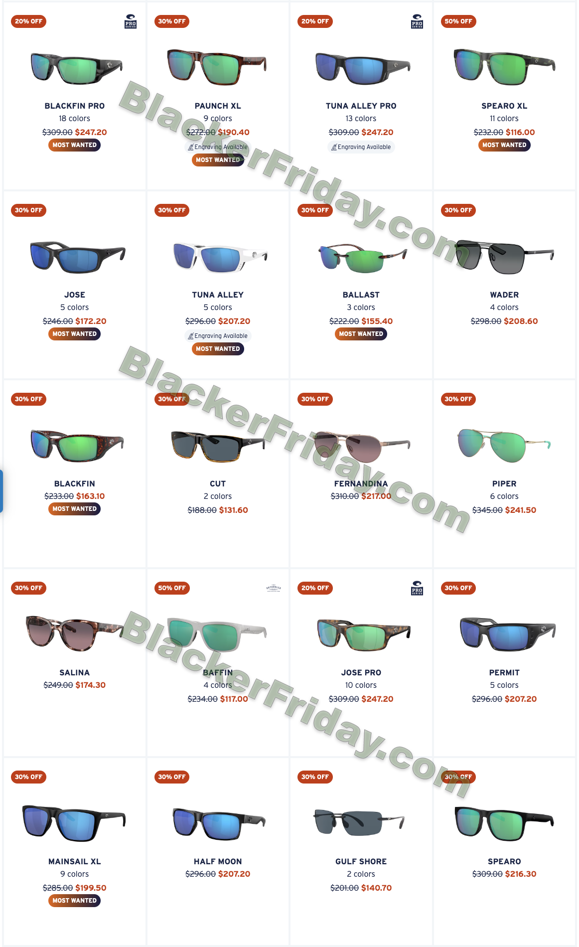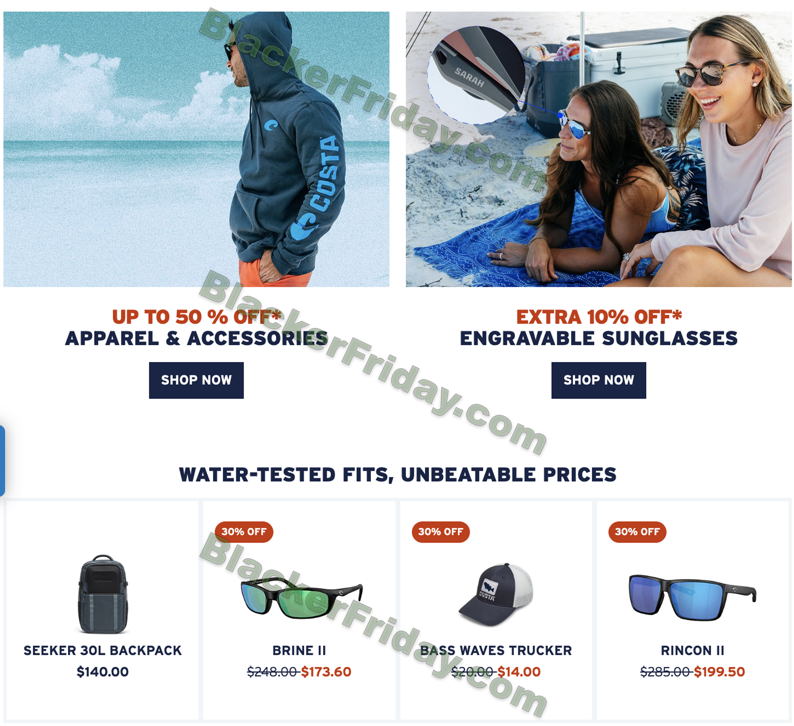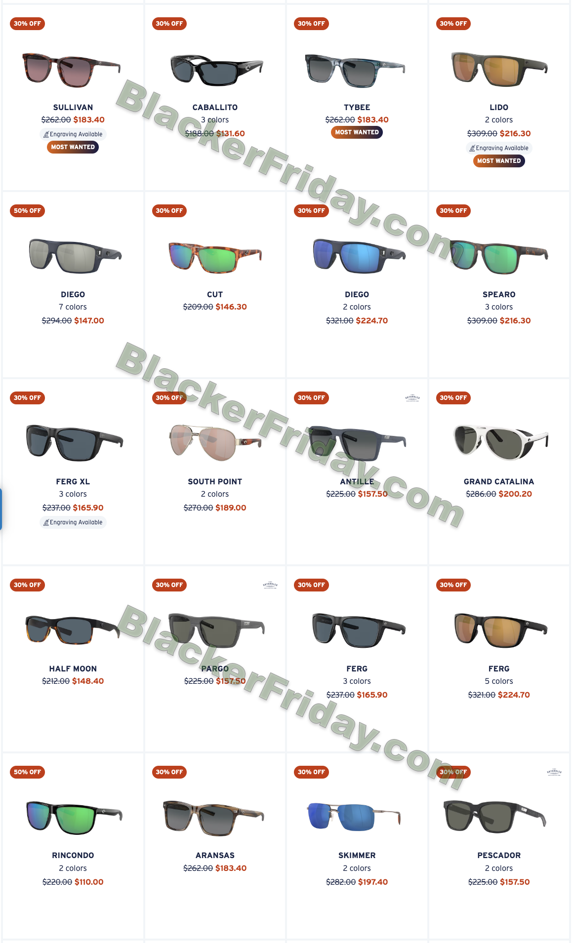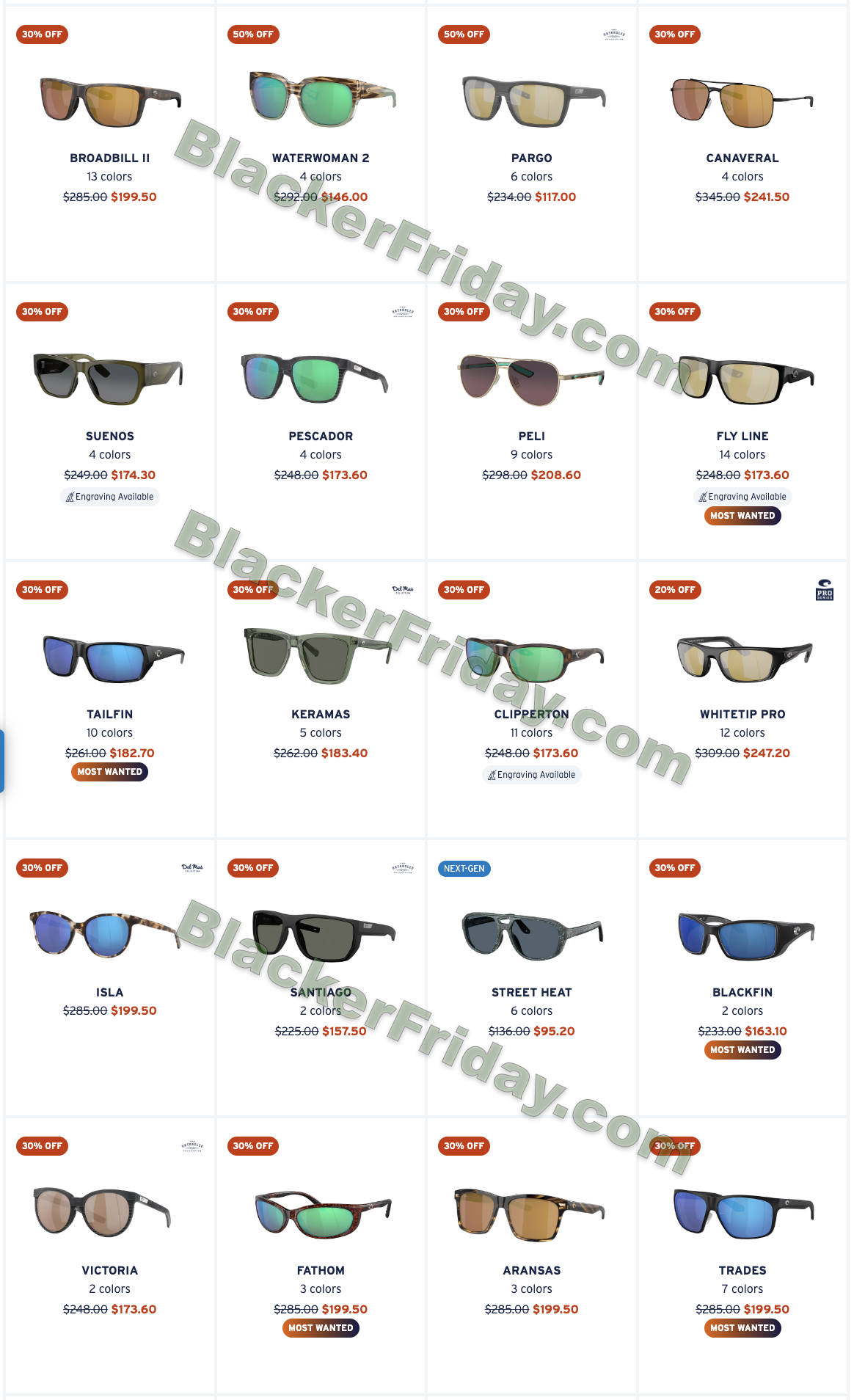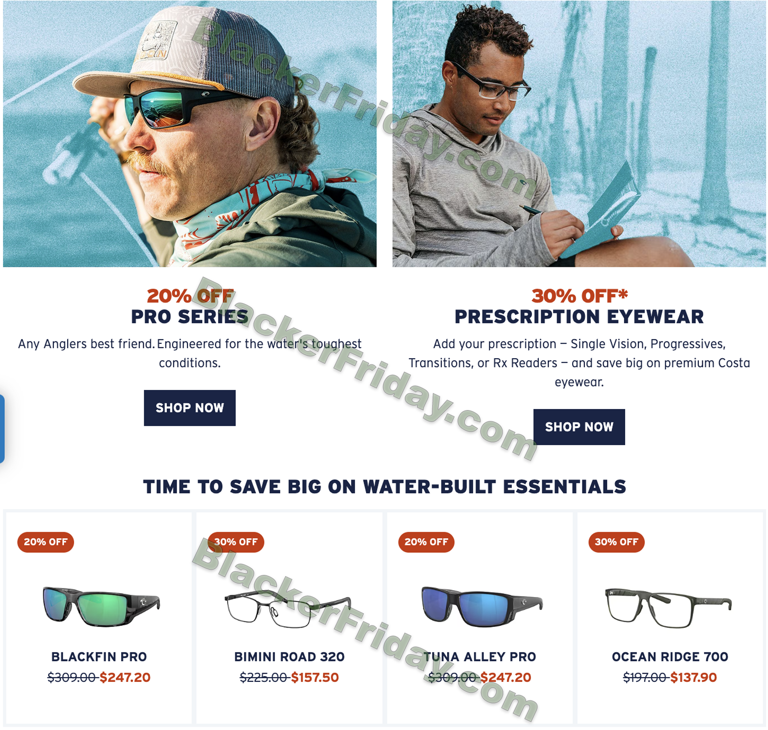 Costa’s Black Friday event focuses on select products rather than sitewide markdowns. Confirmed deals this year include: