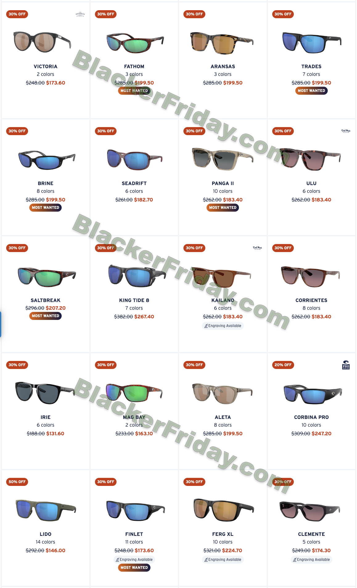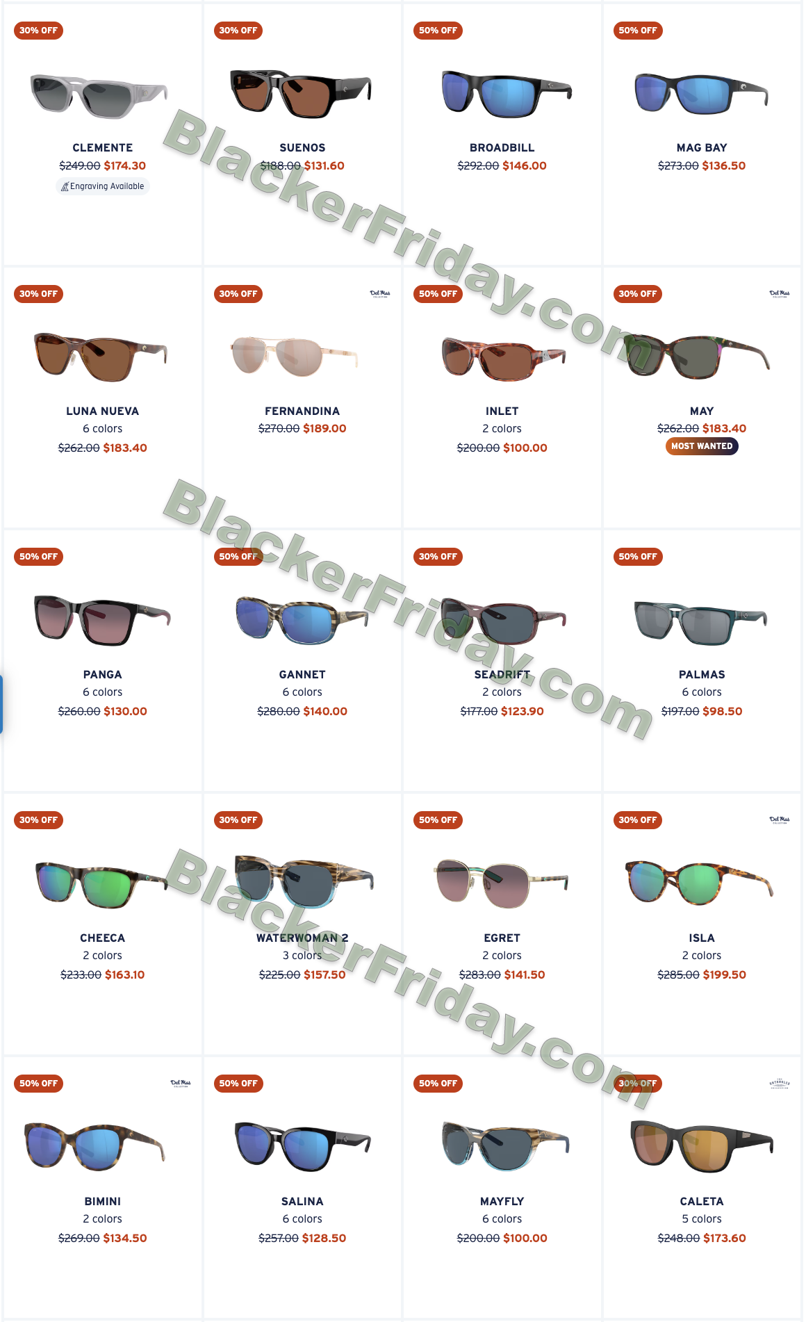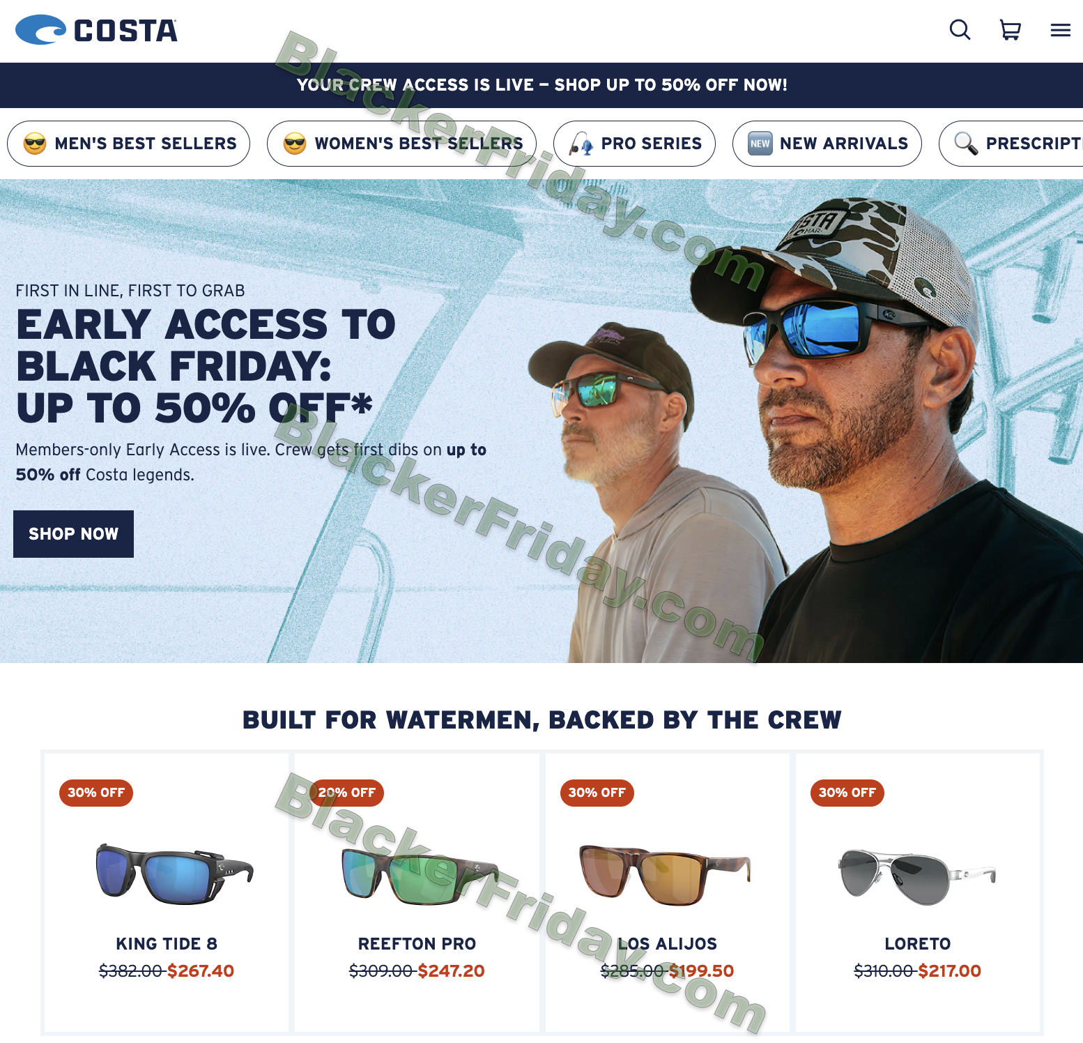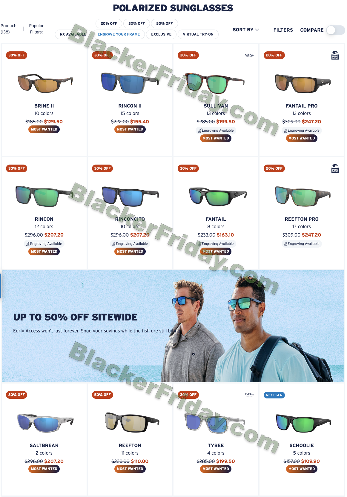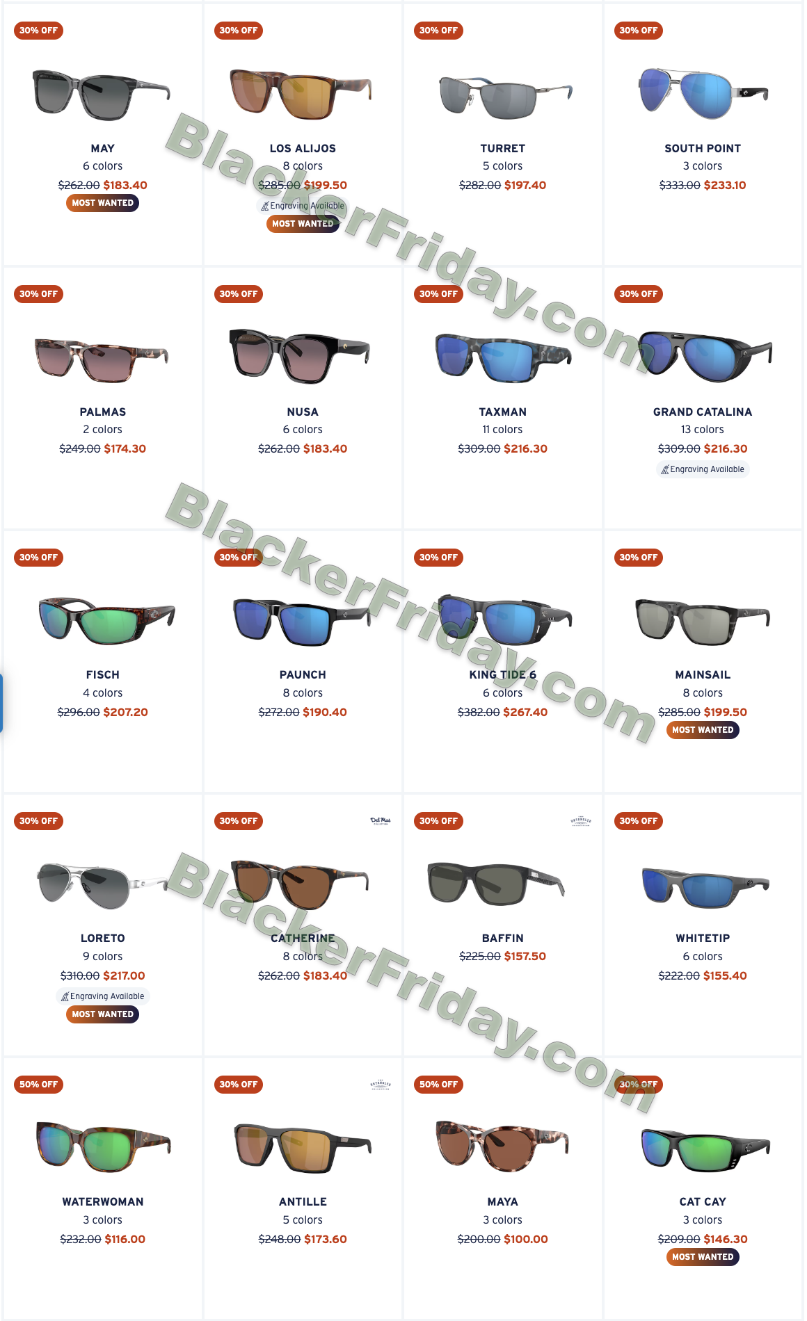 Costa’s Black Friday event focuses on select products rather than sitewide markdowns. Confirmed deals this year include: