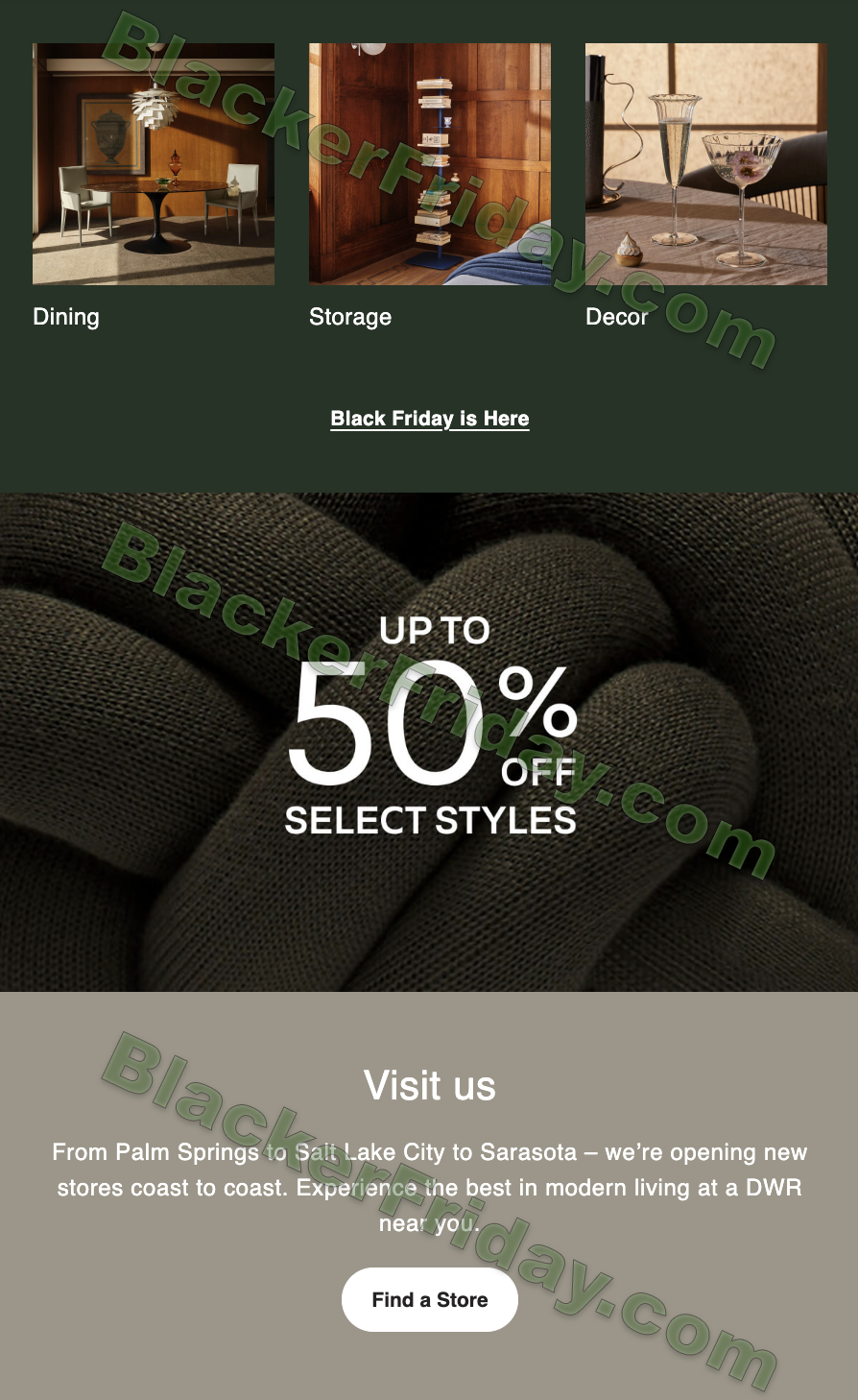 At DWR Outlets, keep in mind that these promotions generally apply only to regular-priced merchandise. Clearance or reduced outlet pieces are typically excluded.