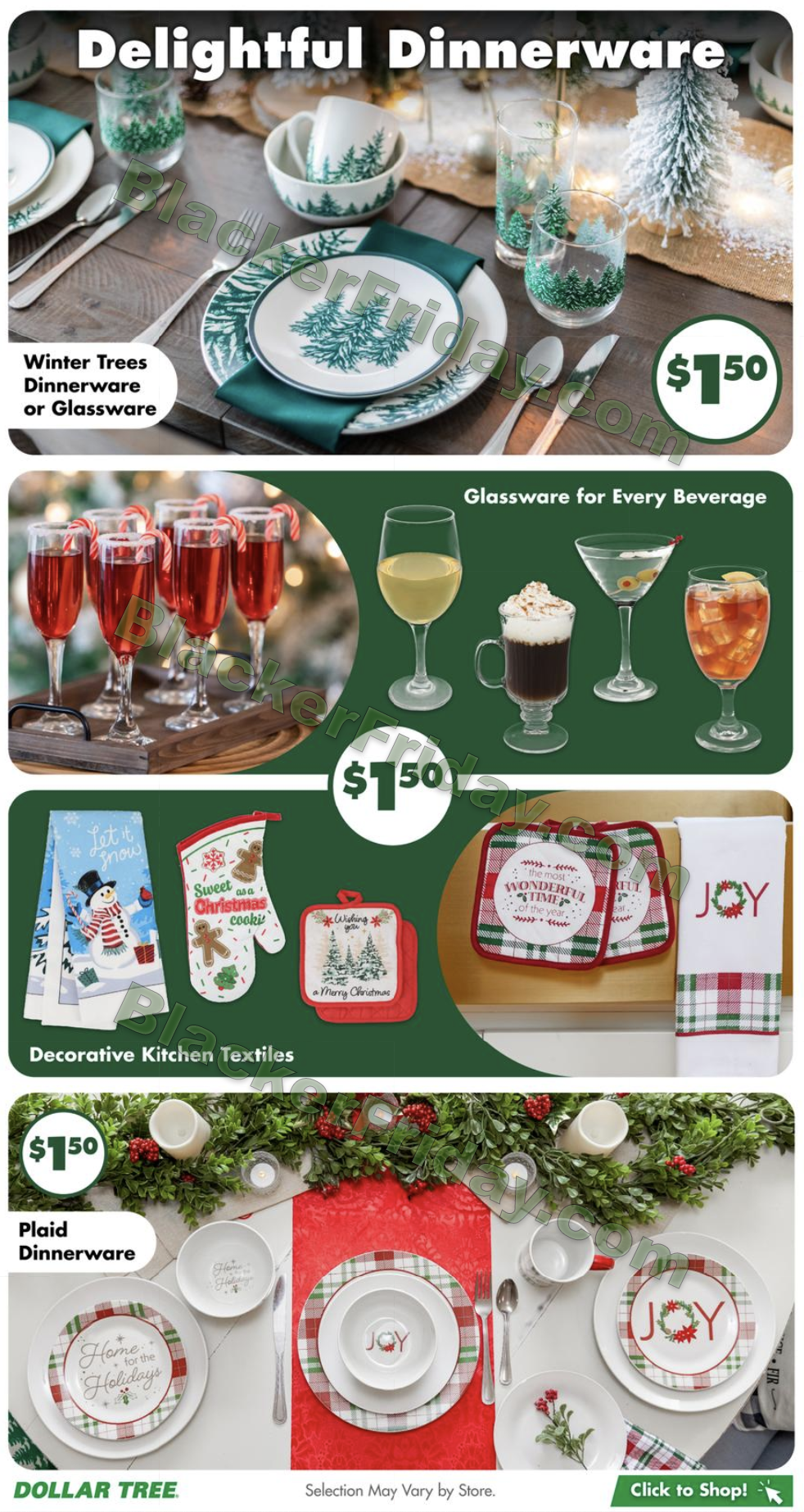 - Winter-themed dinnerware, plaid dinnerwear or glassware around $1.50 each.