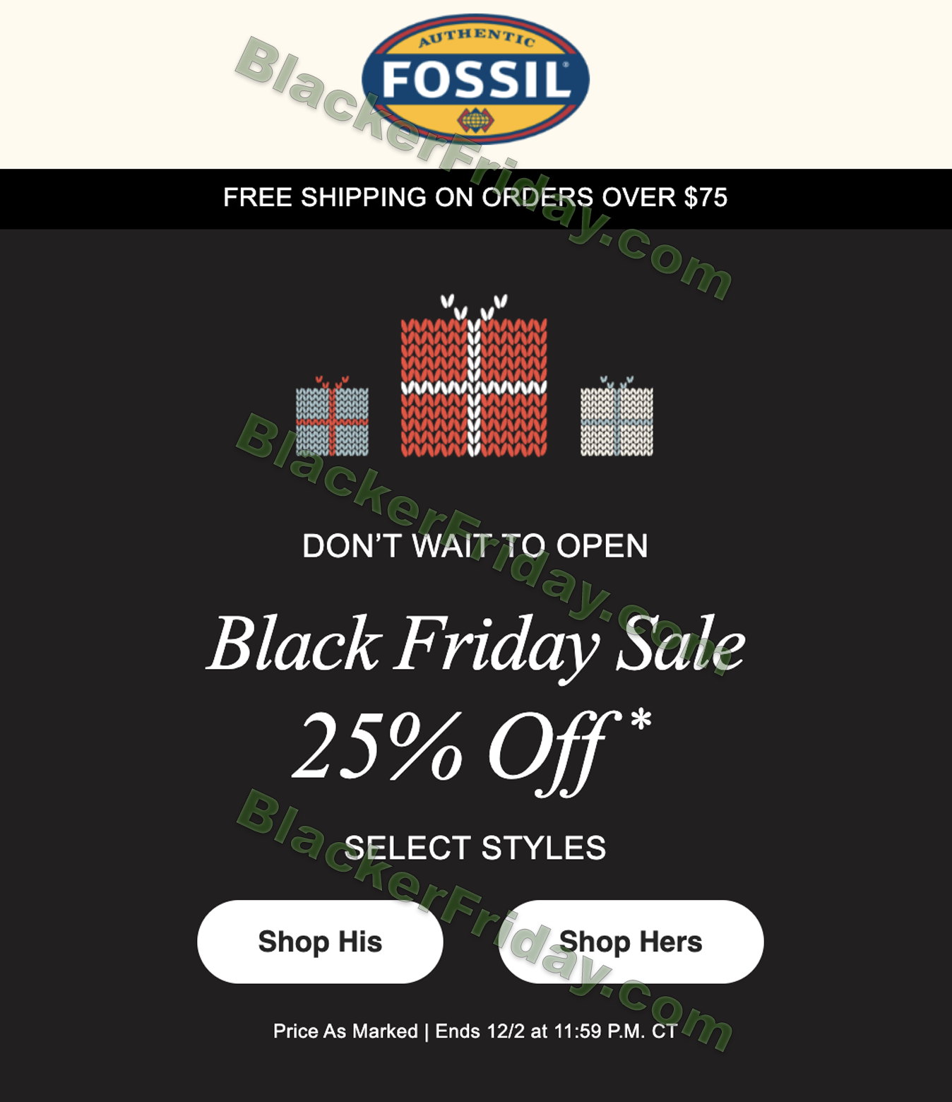 What was last year’s featured offer at Fossil’s Cyber Monday sale? Find out by following the ad archive links below to view the last few years of their ad history.
