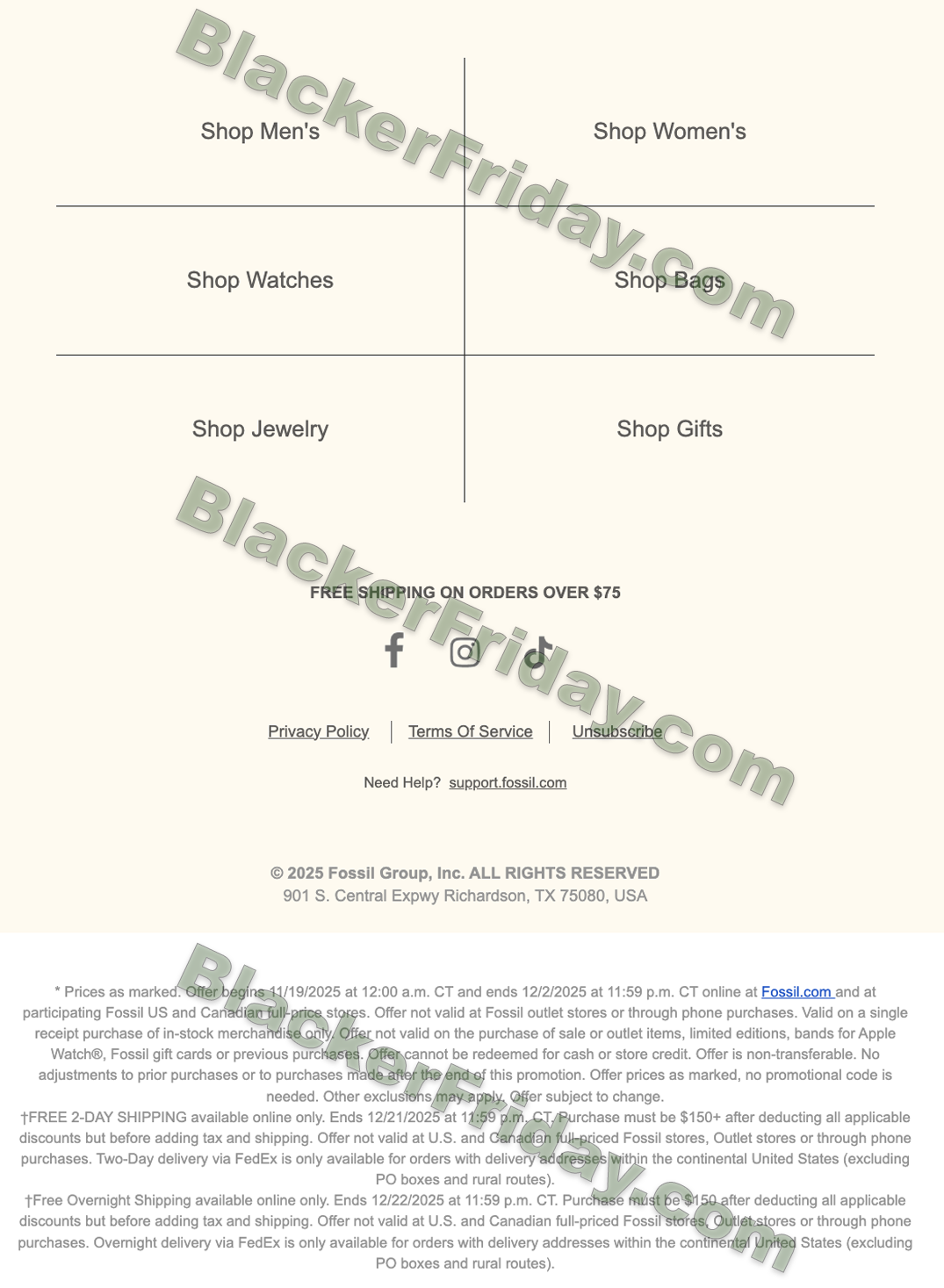 Fossil’s Black Friday/Cyber Monday 2025 Ad