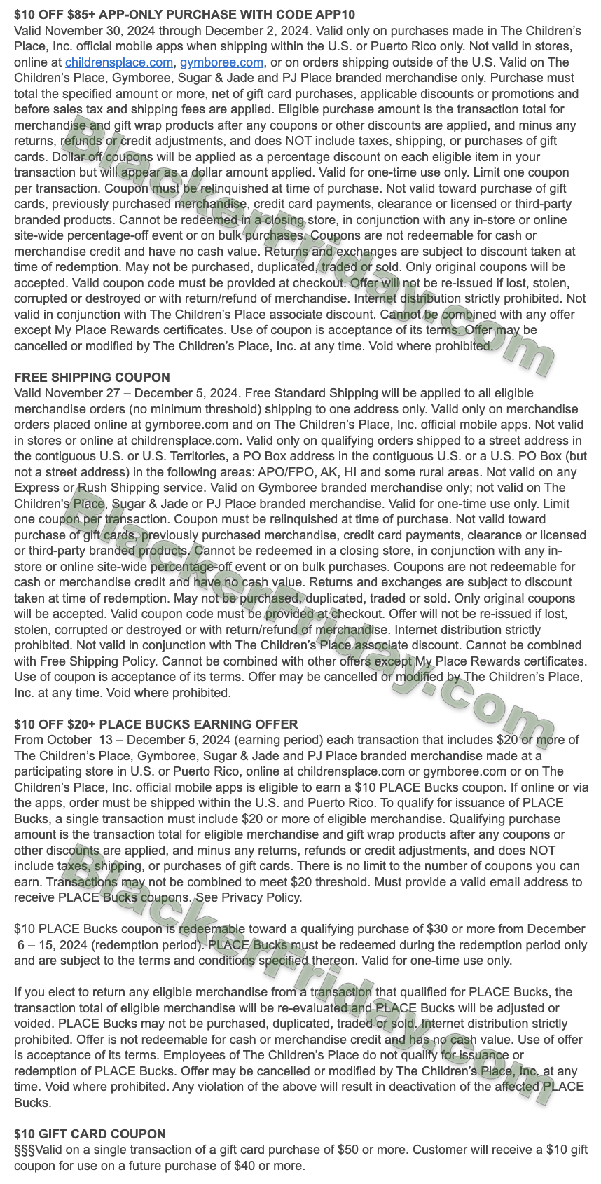 Members of Gymboree’s My Place Rewards program often earn Place Bucks during the sale, with past offers giving $10 for every $20 spent. These rewards can be applied to future purchases but do not cover all items, such as gift cards and certain third-party products.