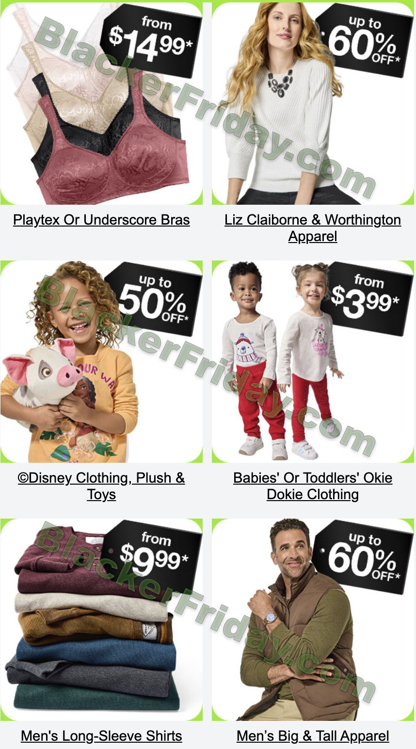 JCPenney has previously offered clothing at reduced prices, including brands like Liz Claiborne and Worthington with discounts up to 60% off. Family outerwear and seasonal items such as pajamas were also part of past sales.
