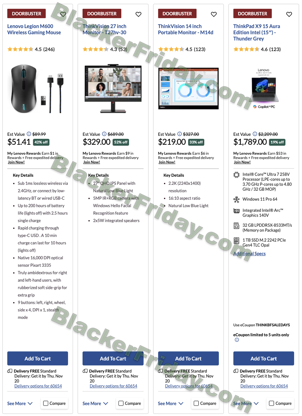 Some offers are tied to specific configurations or bundles. Lenovo has been known to throw in accessories like a mouse, headset, or bag for free as part of Black Friday bundles. It’s also common to see gaming laptops paired with monitors or accessories at a discounted package price.