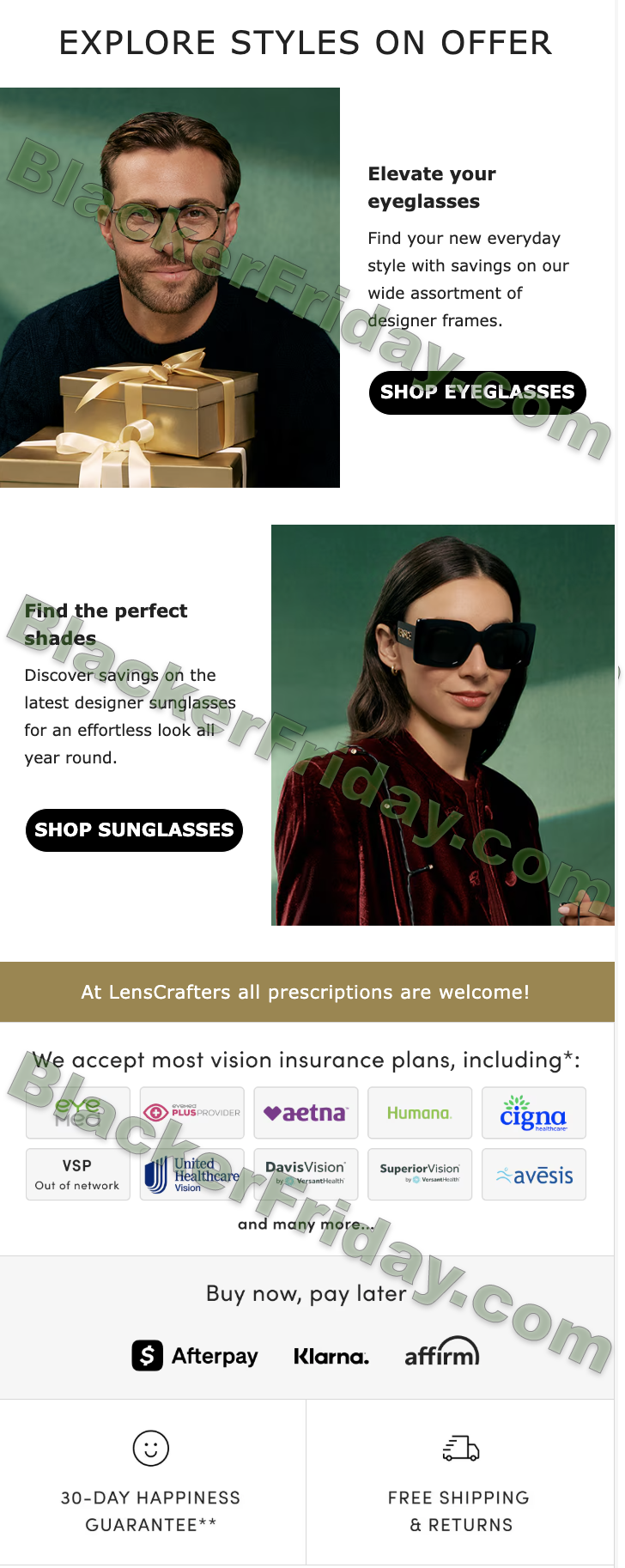 • Offer limitations – Black Friday discounts generally only apply when purchasing complete pairs (frames + lenses) and cannot be combined with vision benefits, other promotions, or previous purchases.