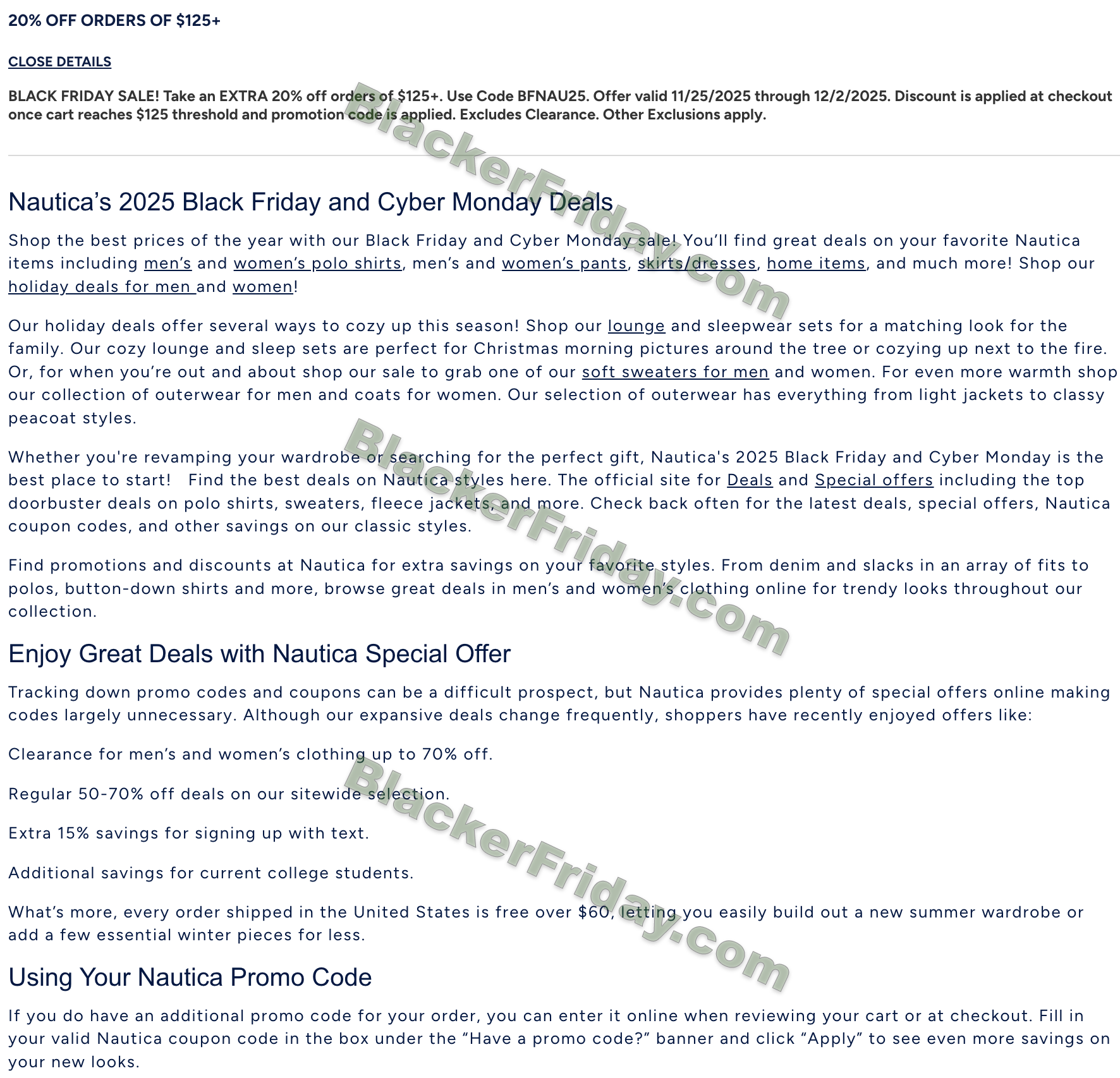 This year, Nautica is offering and EXTRA 20% OFF orders of $125+ with promo Code: BFNAU25.