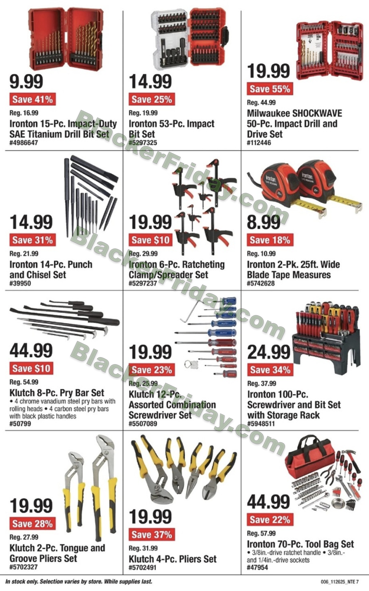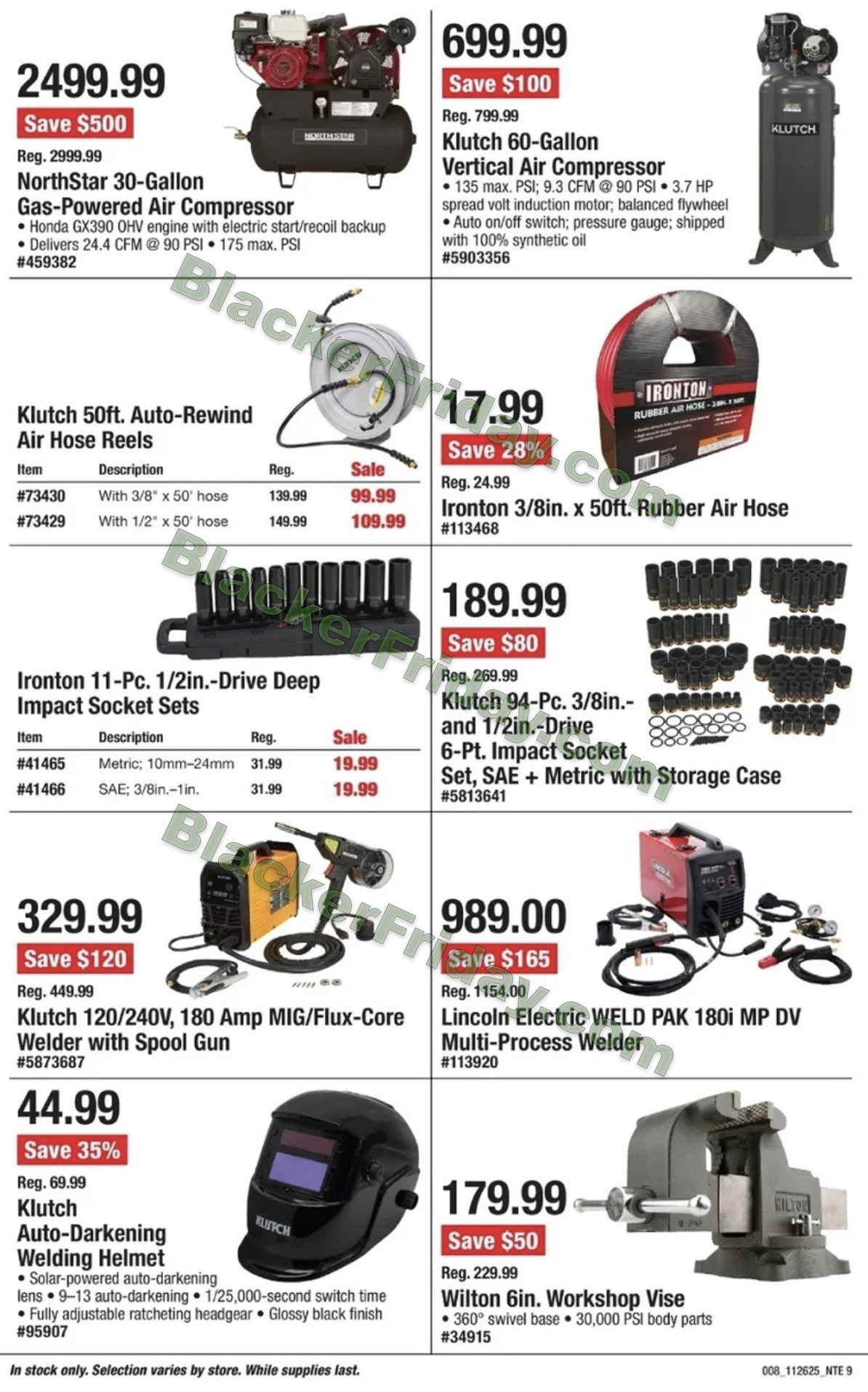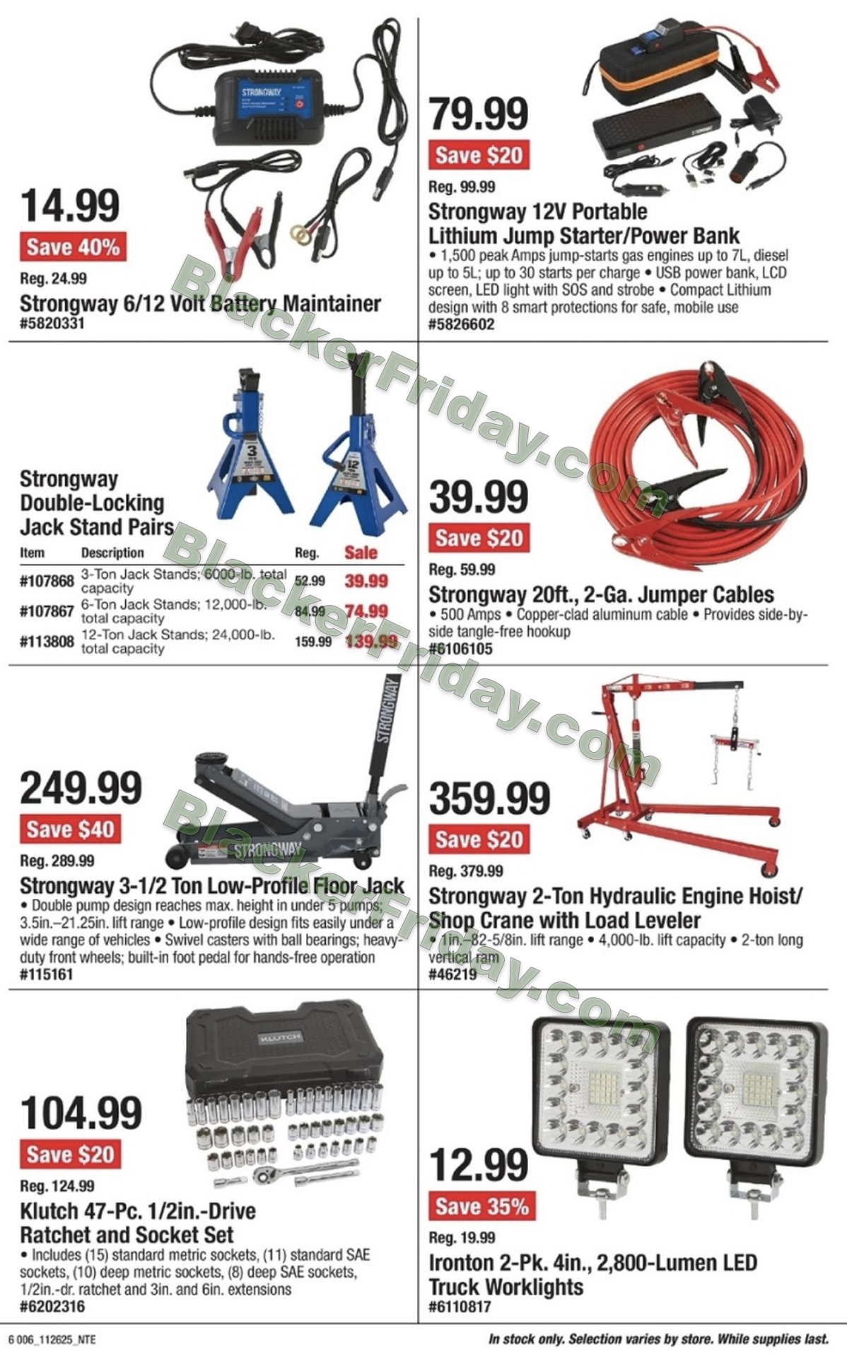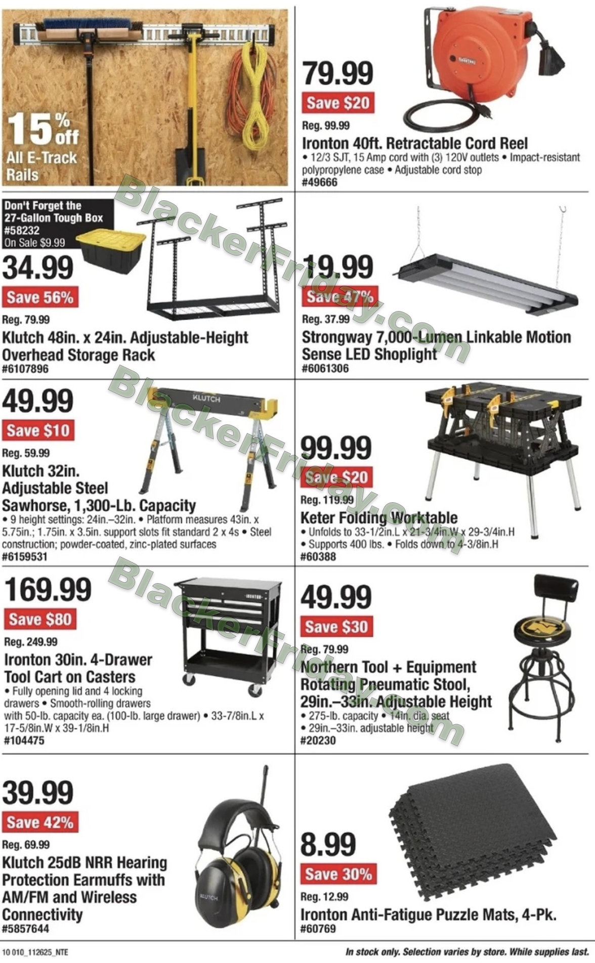 For in-house brands like Ironton, Klutch, and Strongway, discounts tend to be steep, often in the 25–50% range. Name brands such as Milwaukee and Dewalt typically see slightly smaller reductions (15–30%), but these still represent meaningful savings.