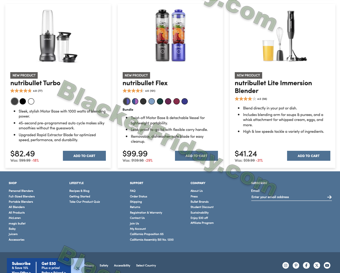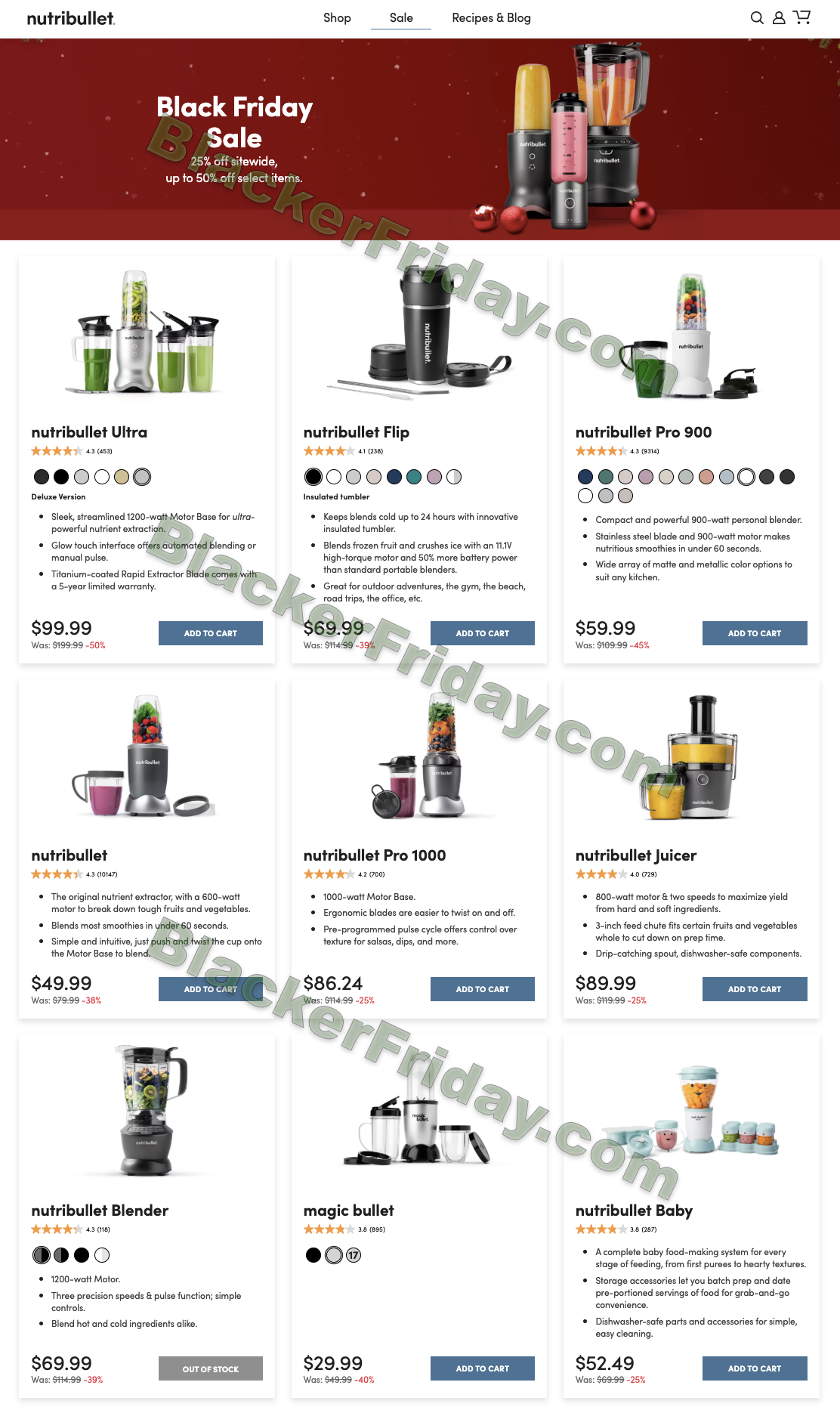 NutriBullet continues to offer free shipping on orders of $25 or more, which means nearly every Black Friday item ships free. These promotional prices cannot be combined with additional coupon codes or discount offers. The sale prices listed are the final price you’ll pay at checkout.