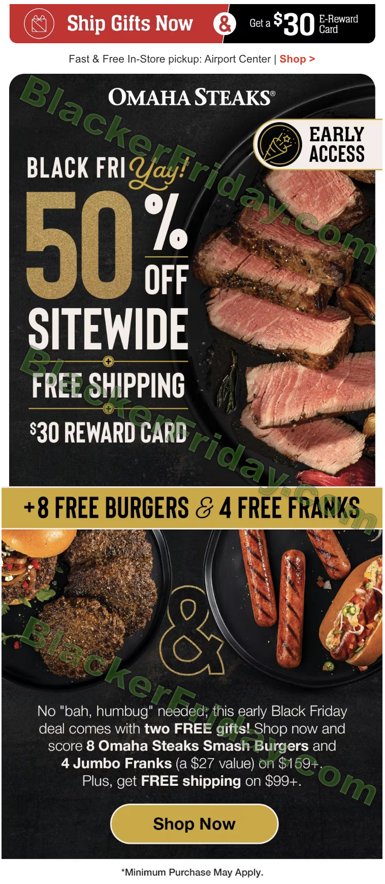 - Free gift: 8 Omaha Steaks Smash Burgers + 4 Jumbo Franks (a $27 value) on orders of $159+.