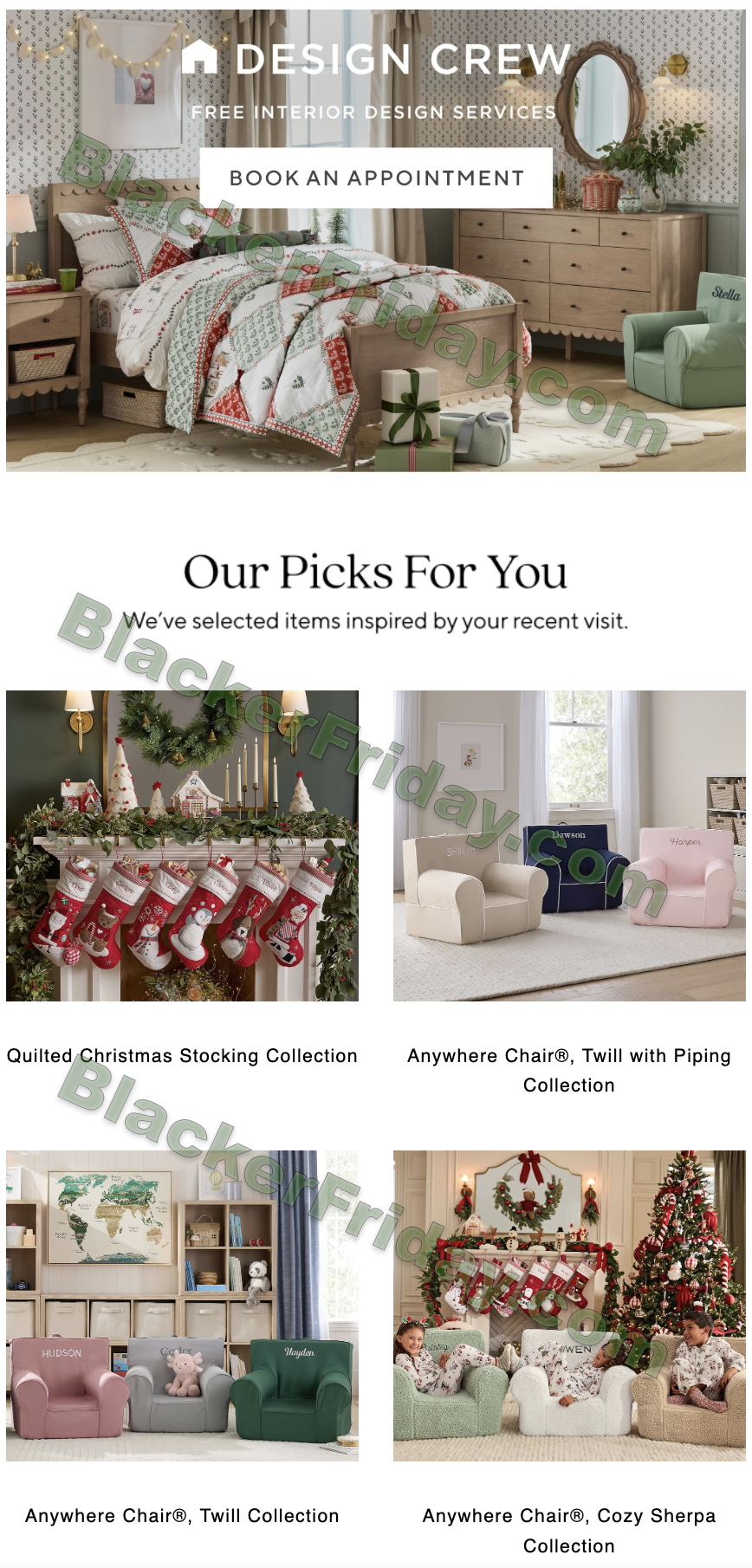 • Popular items may sell out quickly, especially nursery furniture, Anywhere Chairs, and holiday décor.