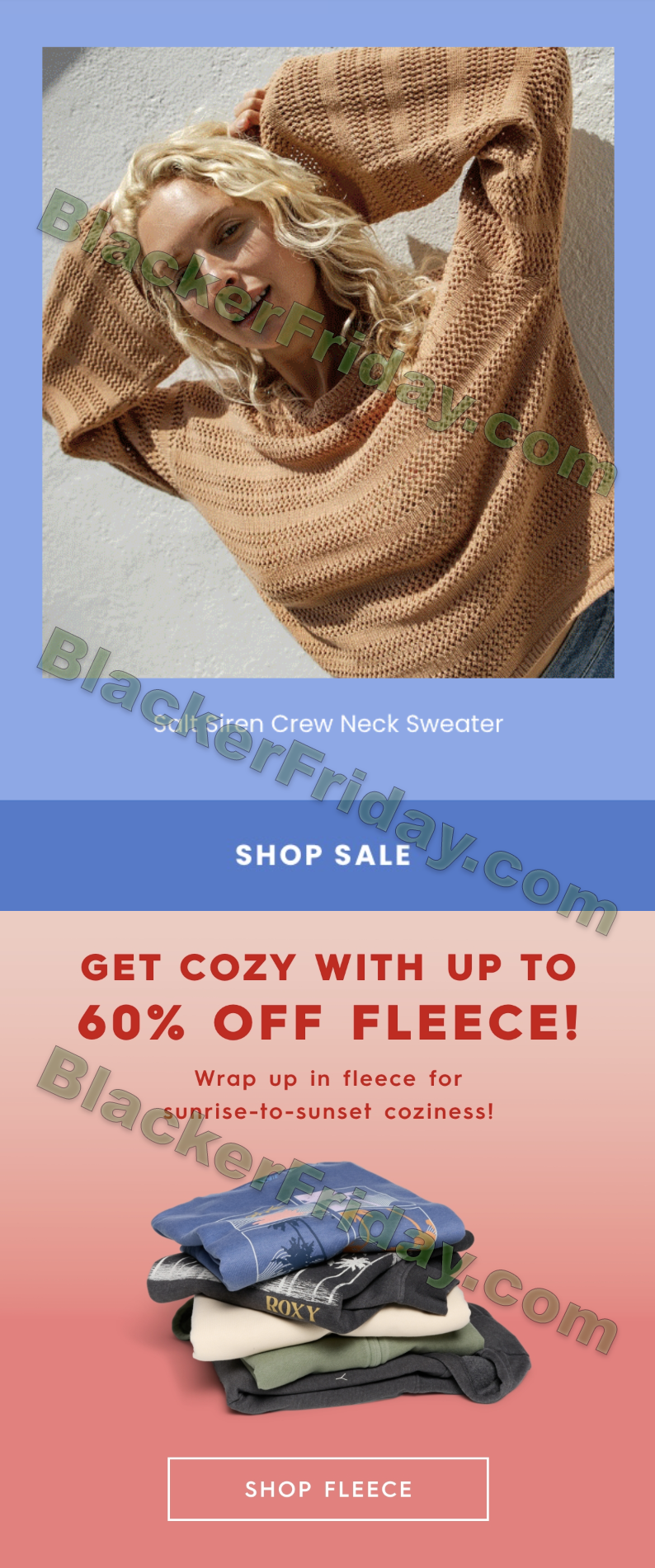 You can expect 50% off sitewide at roxy.com during the event, which was the headline offer last year when Roxy used promo code CYBER. In 2024, the brand also highlighted up to 60% off select fleece styles, which were some of the steepest markdowns of the season.