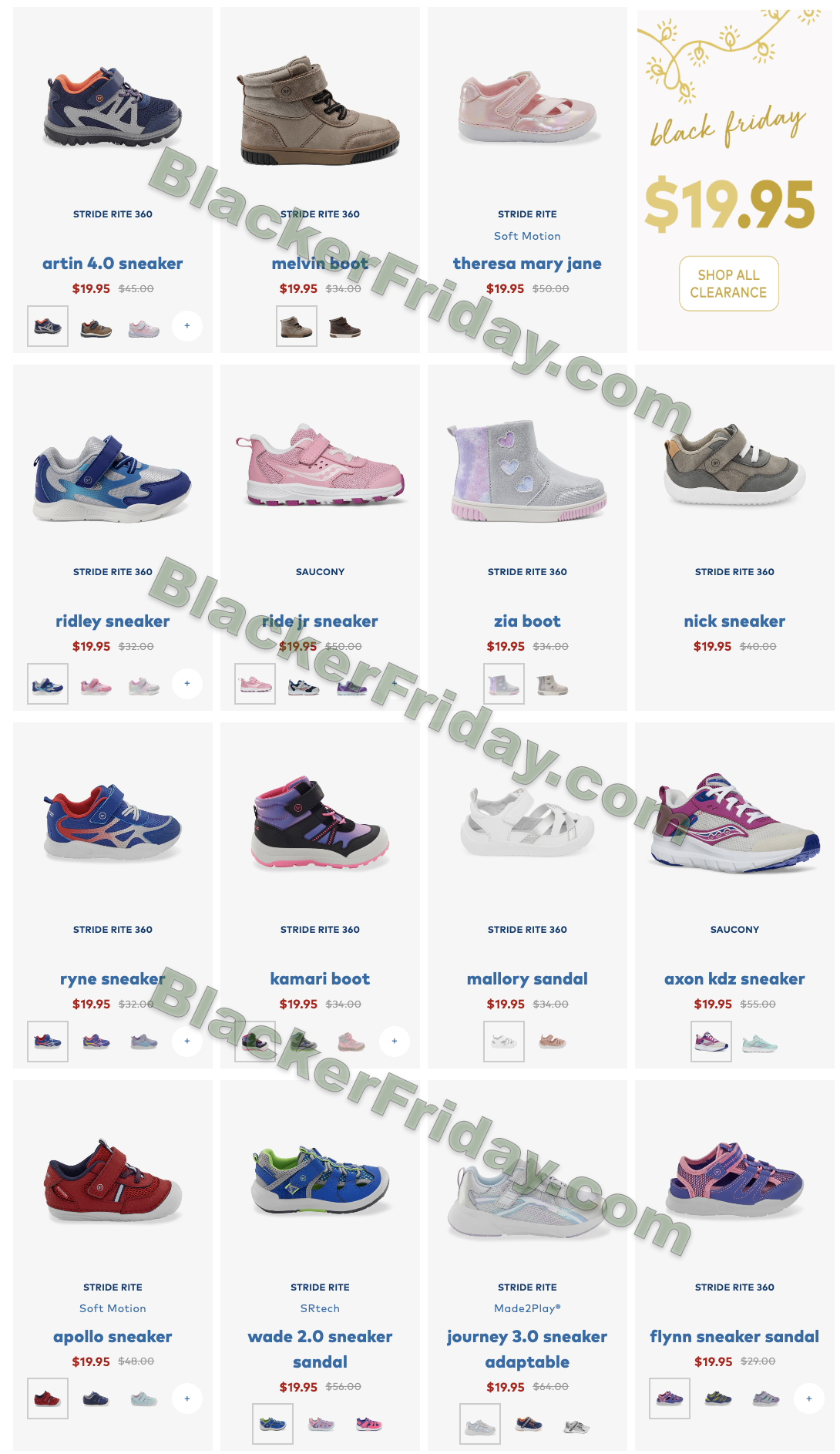 This list represents just a small selection—Stride Rite offers over 70 different styles in this Black Friday clearance event.