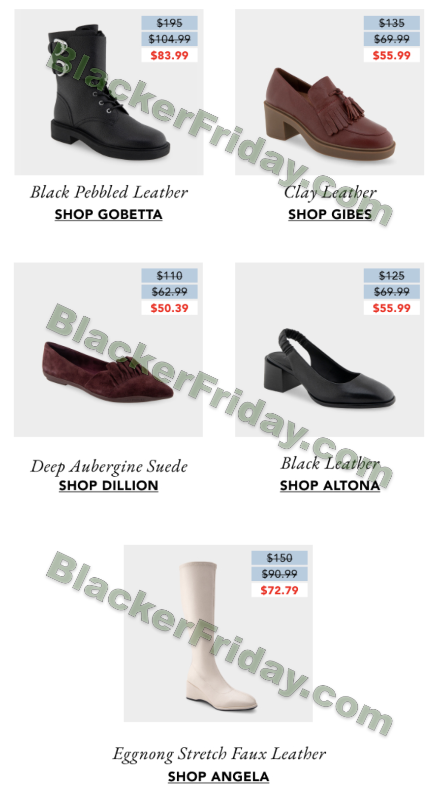 Examples from prior sales include the Alae Women’s Mid Heel Pump reduced from $125 to $79.99, the Deanna Women’s Loafer dropping from $69 to $39.99, and platform sandals like the Cora Women’s Platform Sandal reduced from $160 to $89.99.