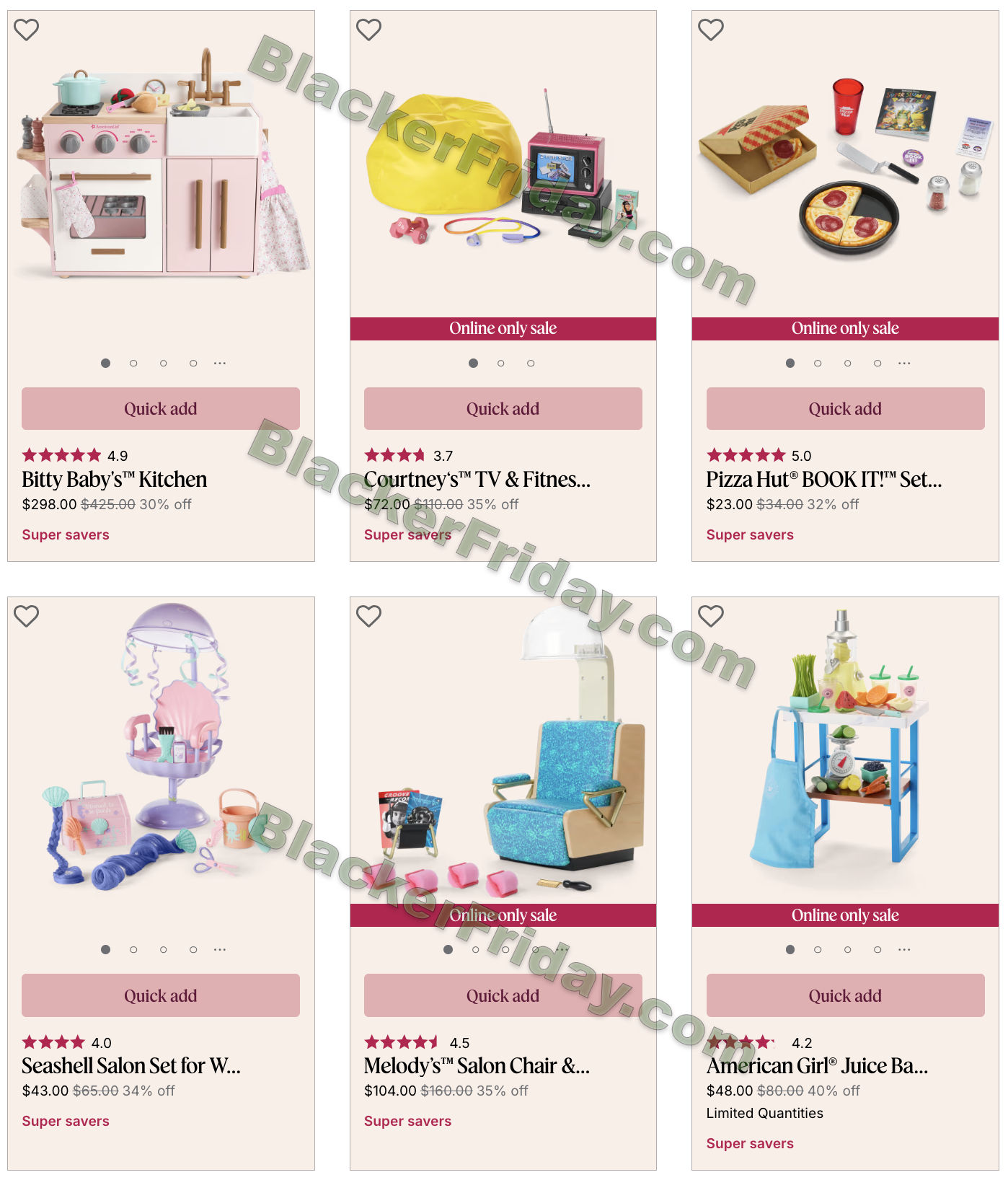 - Super Savers markdowns apply both online and in American Girl retail stores.