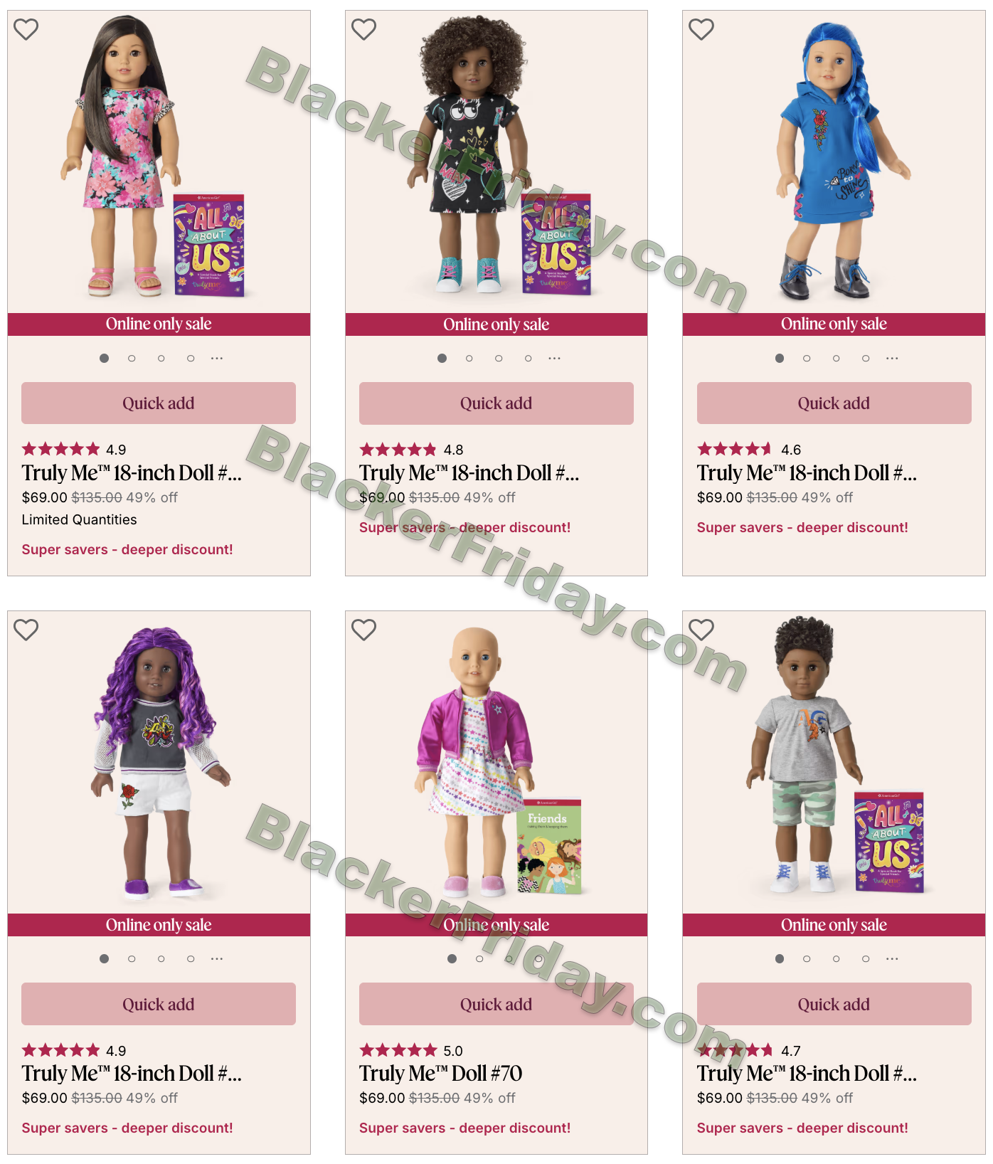 - Truly Me 18 inch Dolls (various numbers including #70, #90, #91, #105, #112, #113, #114, #124) for $69, originally $135