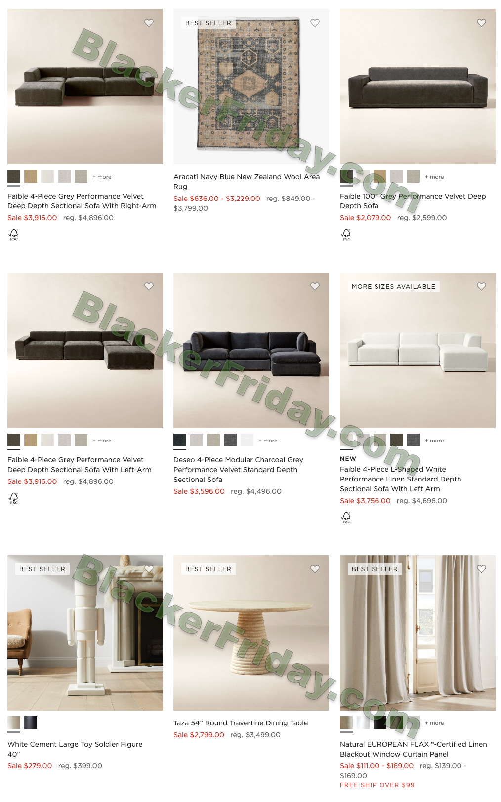 - Furniture & Sectionals – Many large items, including sofas and sectionals, are on sale at up to 20–30% off, with select items discounted as much as 60%.