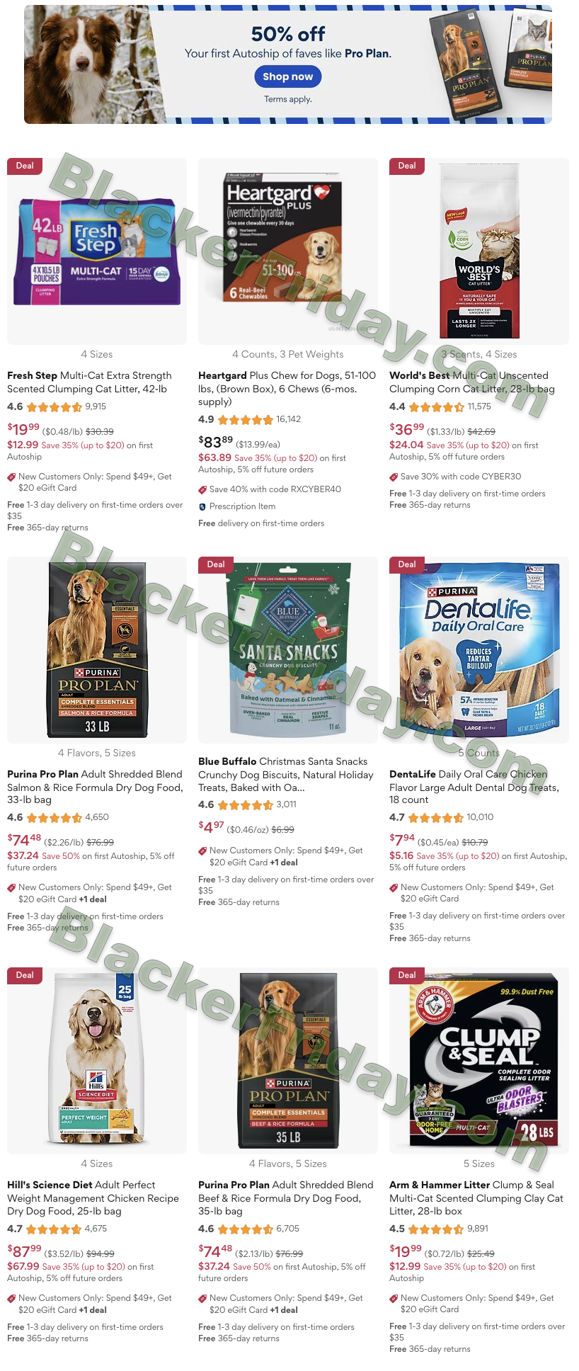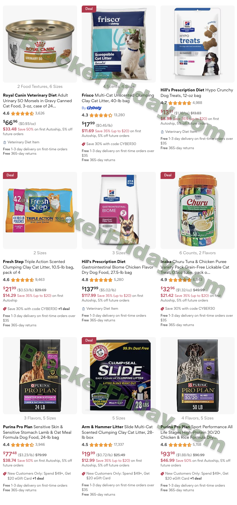 Chewy is offering discounts on a wide range of pet products, often up to 50% off, depending on the item. Deals are available across products for dogs, cats, birds, reptiles, fish, and small pets. New Chewy customers can also take advantage of 50% off their first Autoship order on select food, treats, and litter.