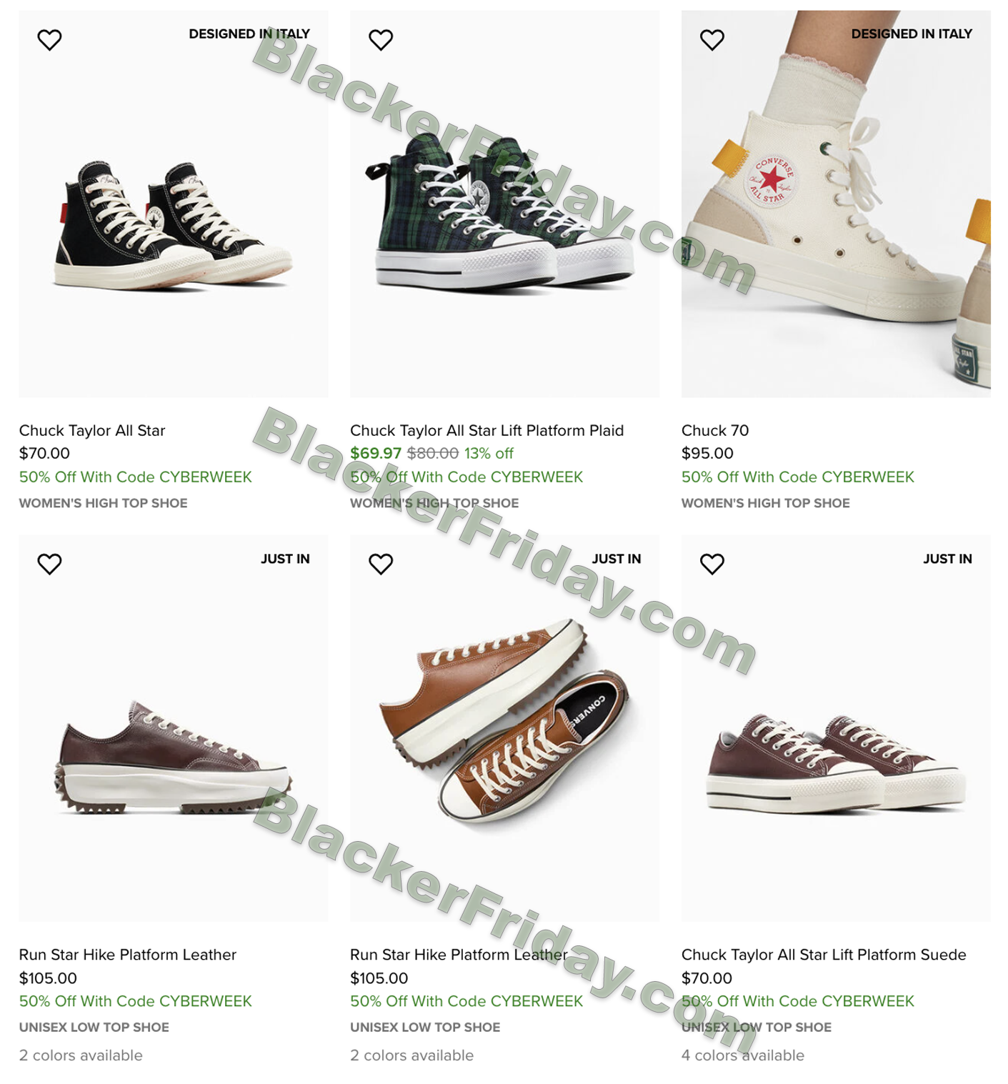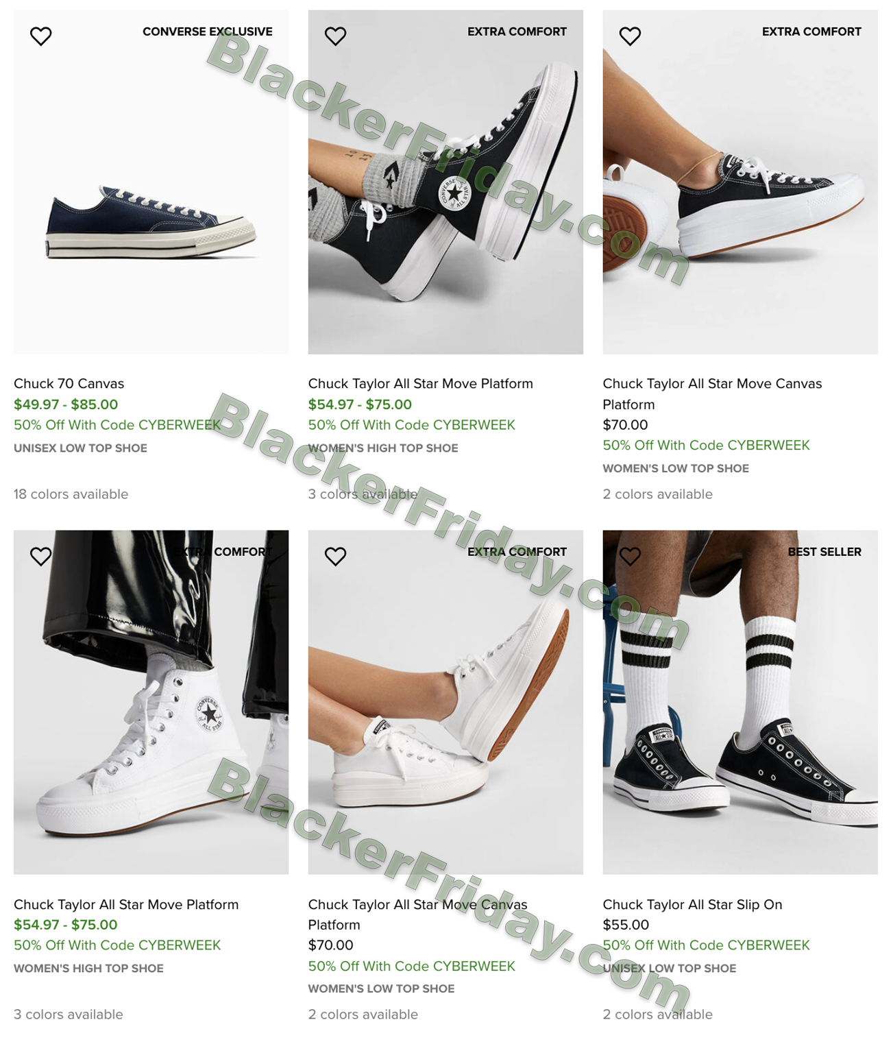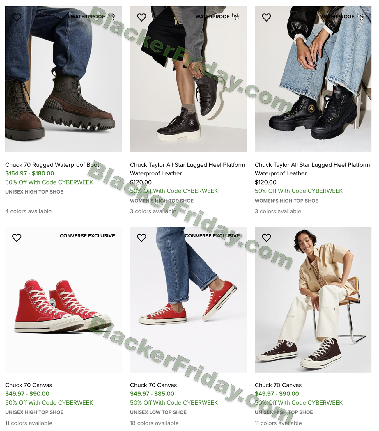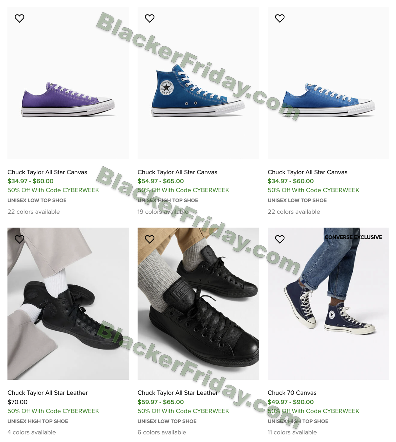 All offers are available exclusively on Converse’s website, converse.com. Products included in the promotion are clearly labeled with either: