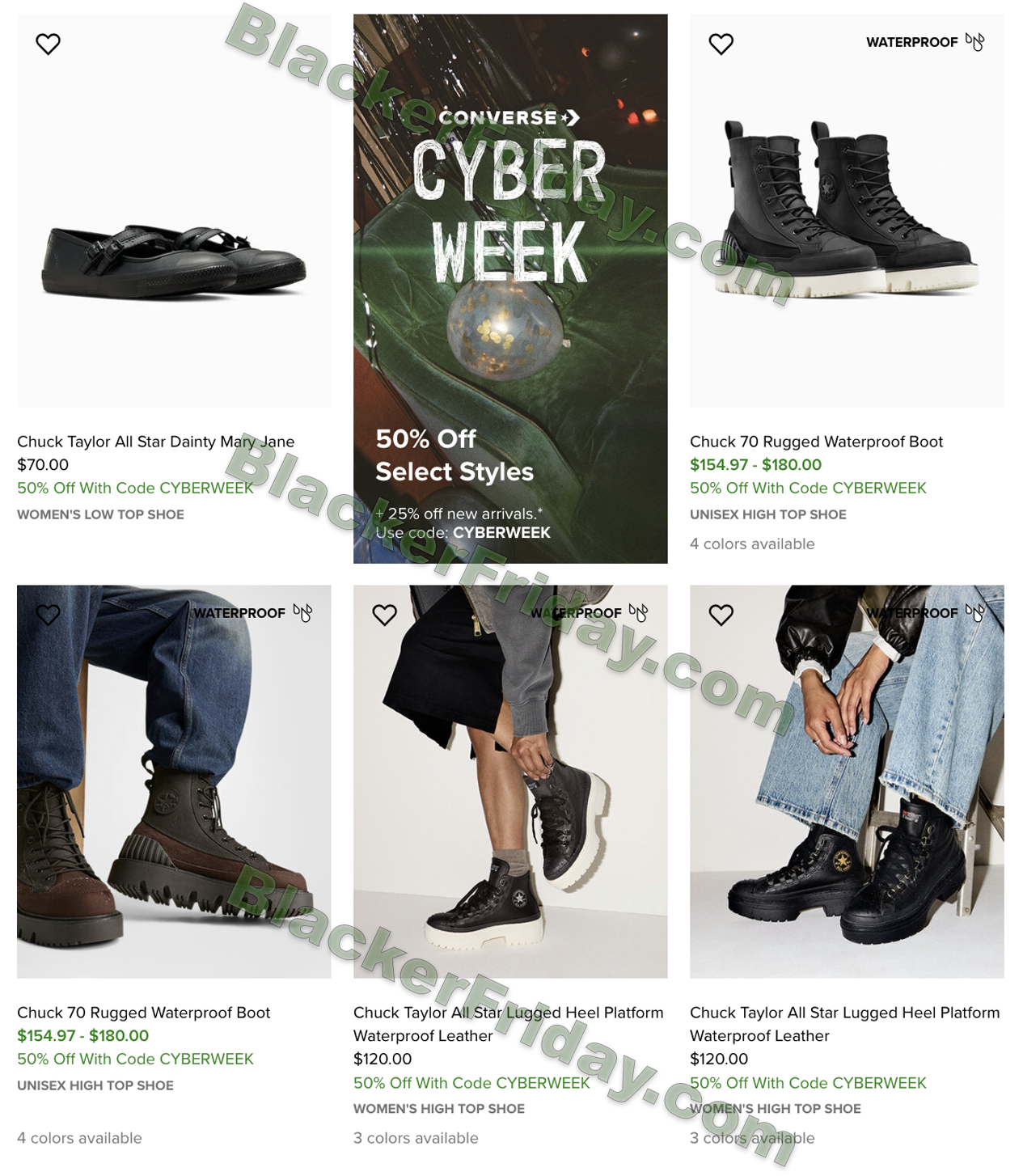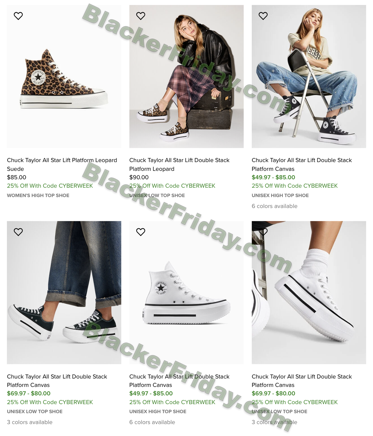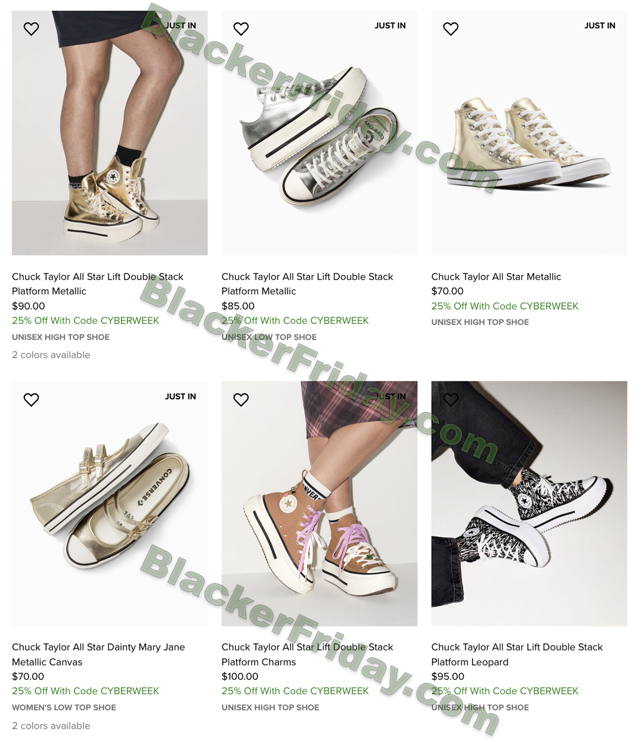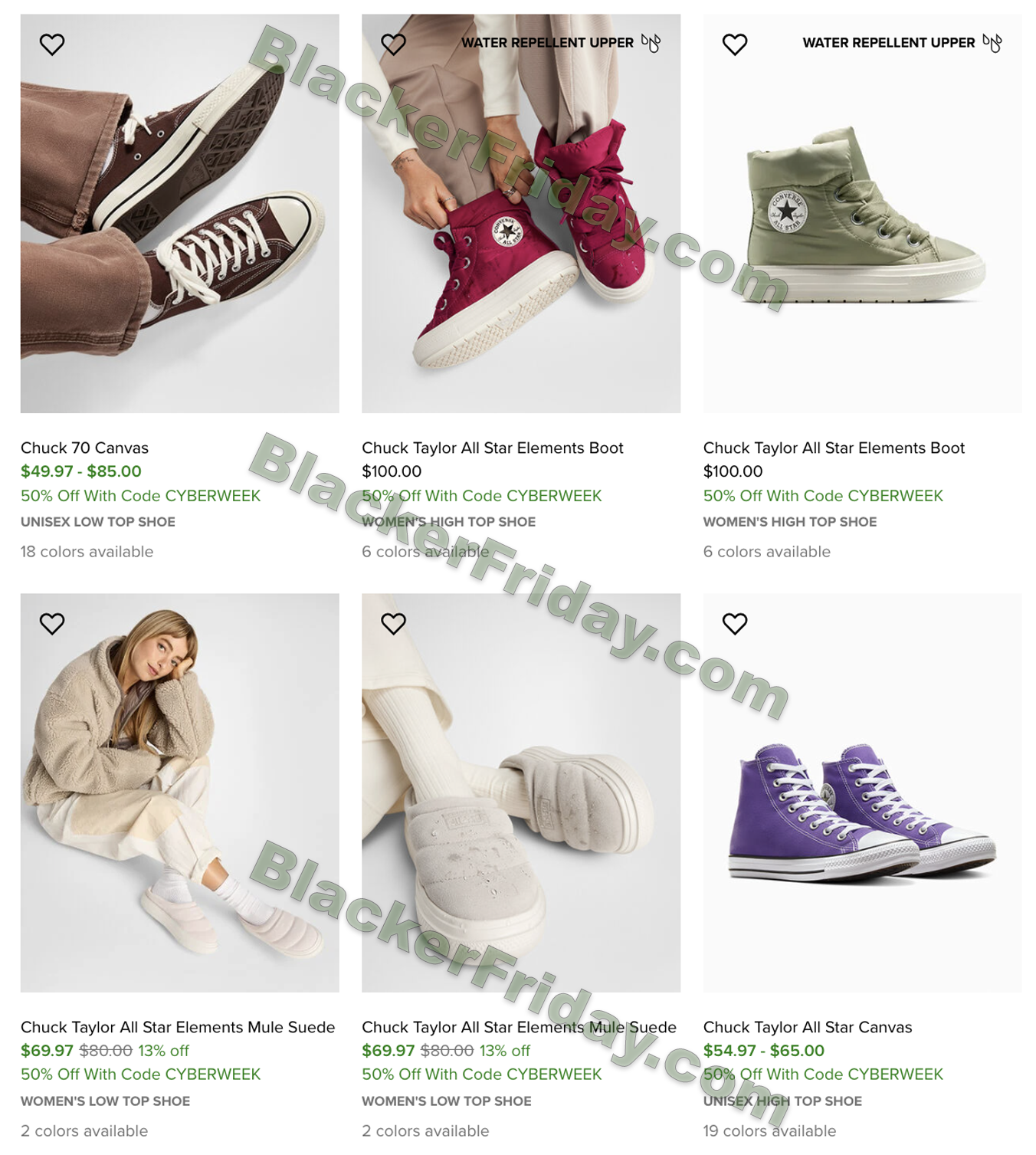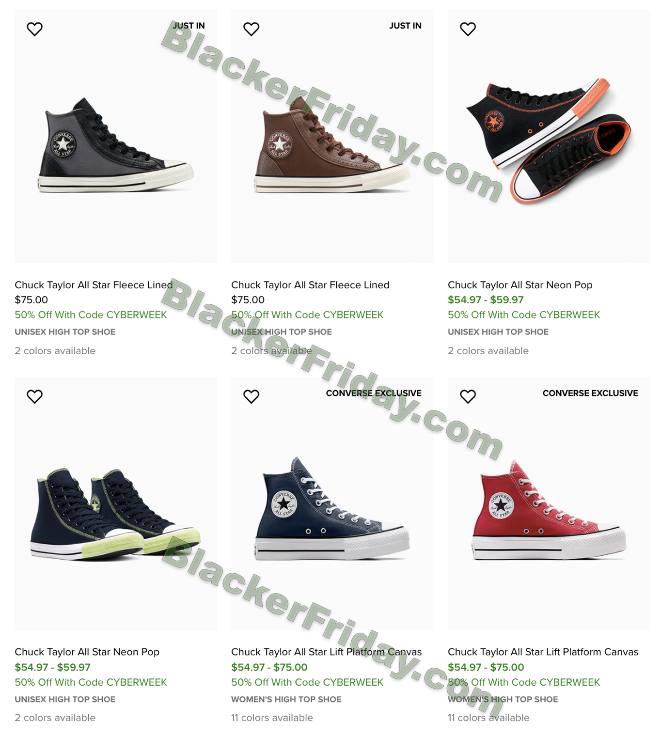 All offers are available exclusively on Converse’s website, converse.com. Products included in the promotion are clearly labeled with either: