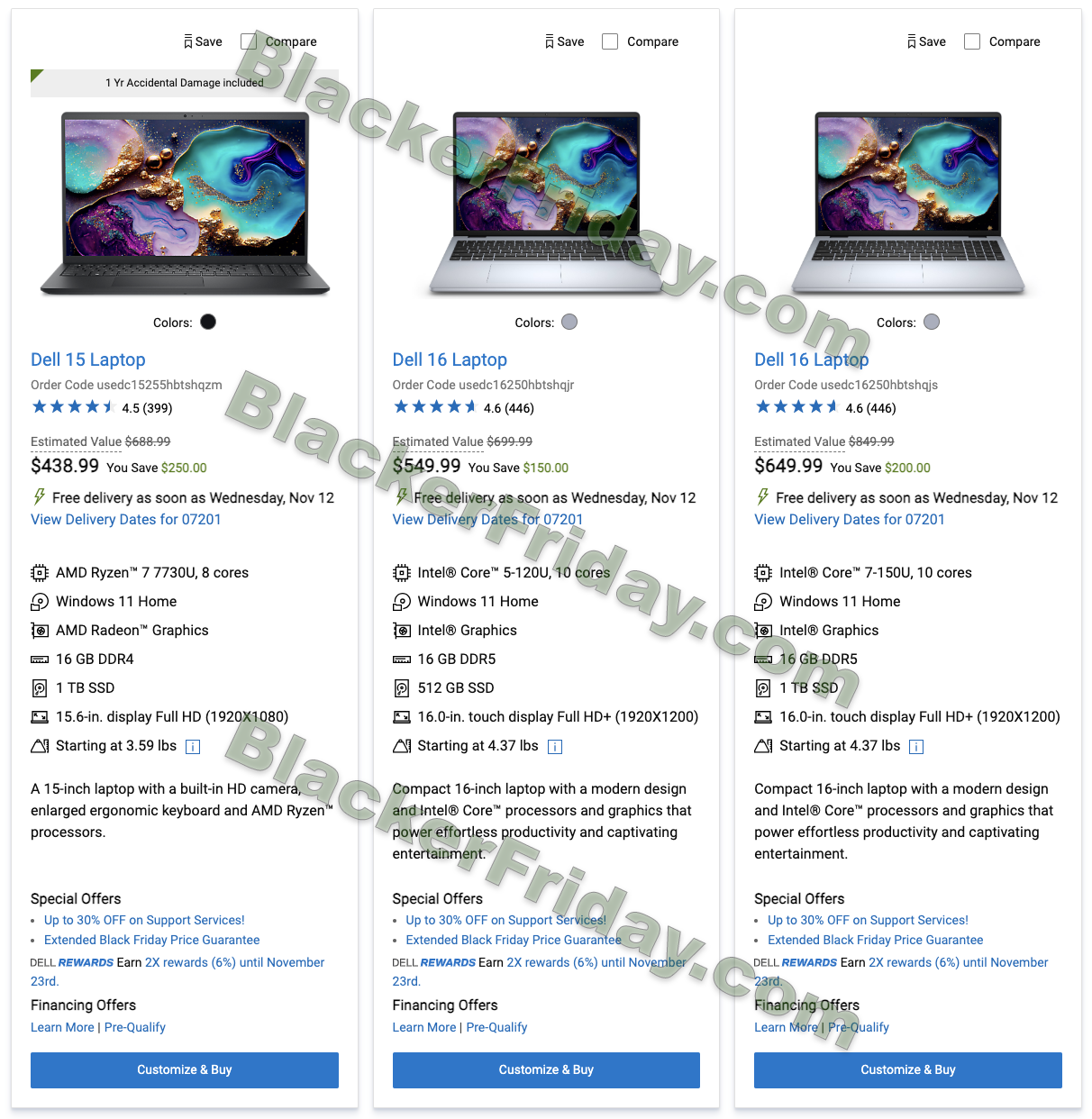 - Dell 15 Laptop – AMD Ryzen 5, 8 GB RAM, 512 GB SSD, 15.6″ Full HD, $299.99 (Save $150).
