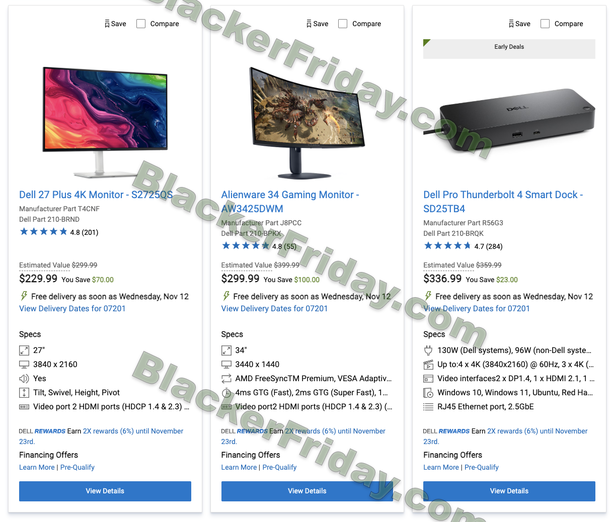 - Alienware 34 Gaming Monitor – 34″ ultrawide, 3440×1440, $299.99 (Save $100).