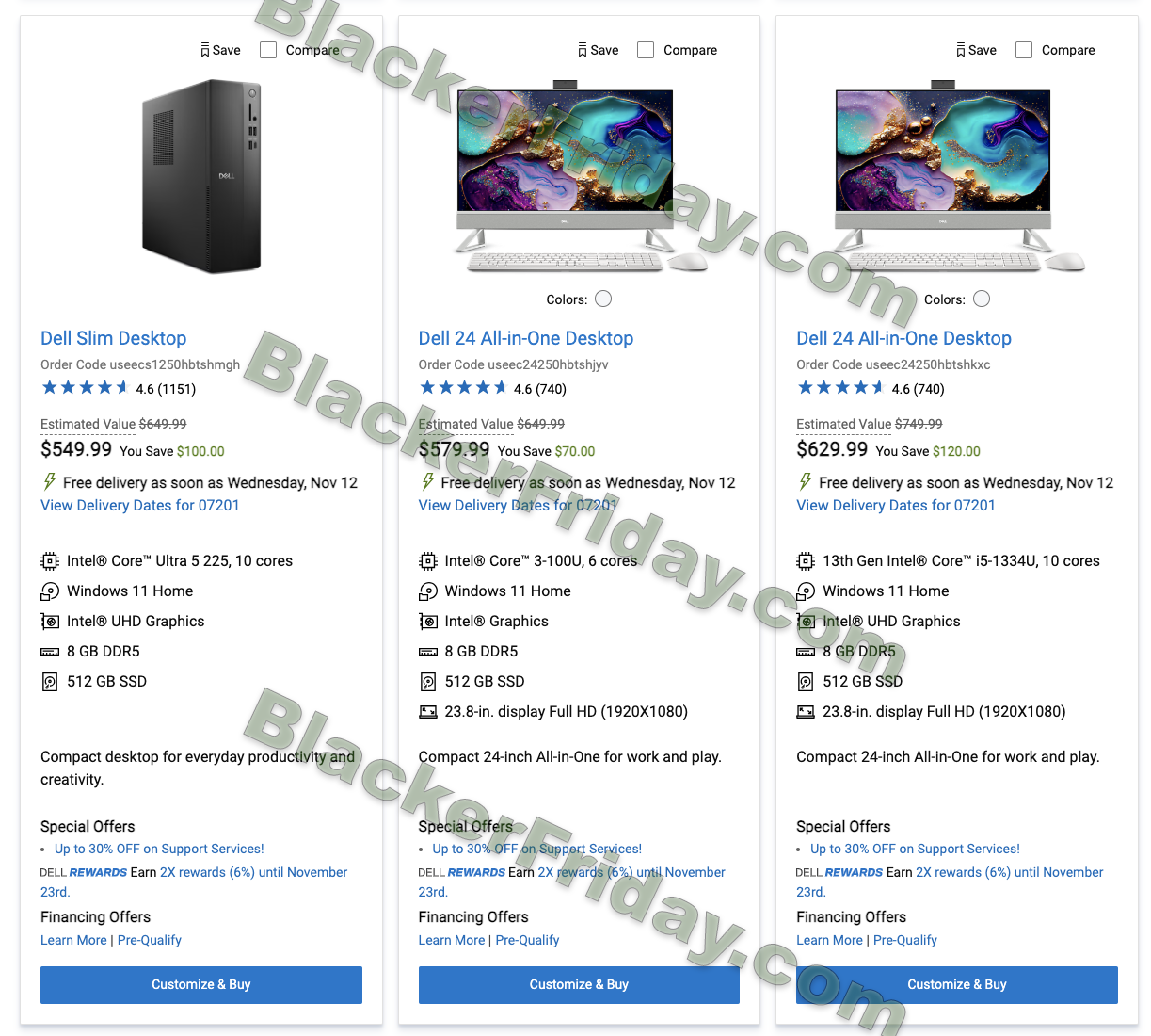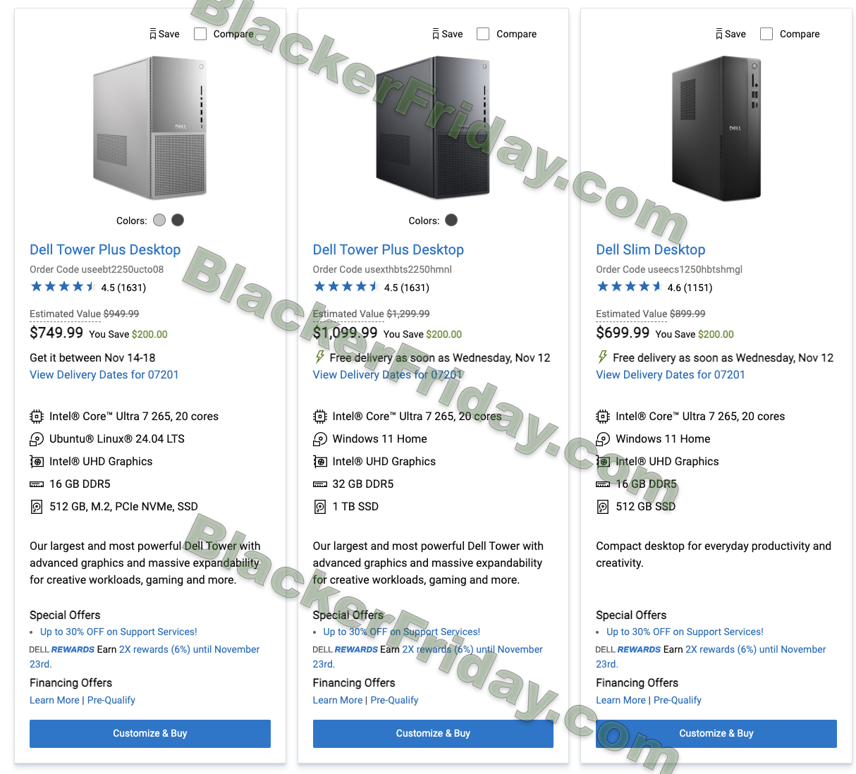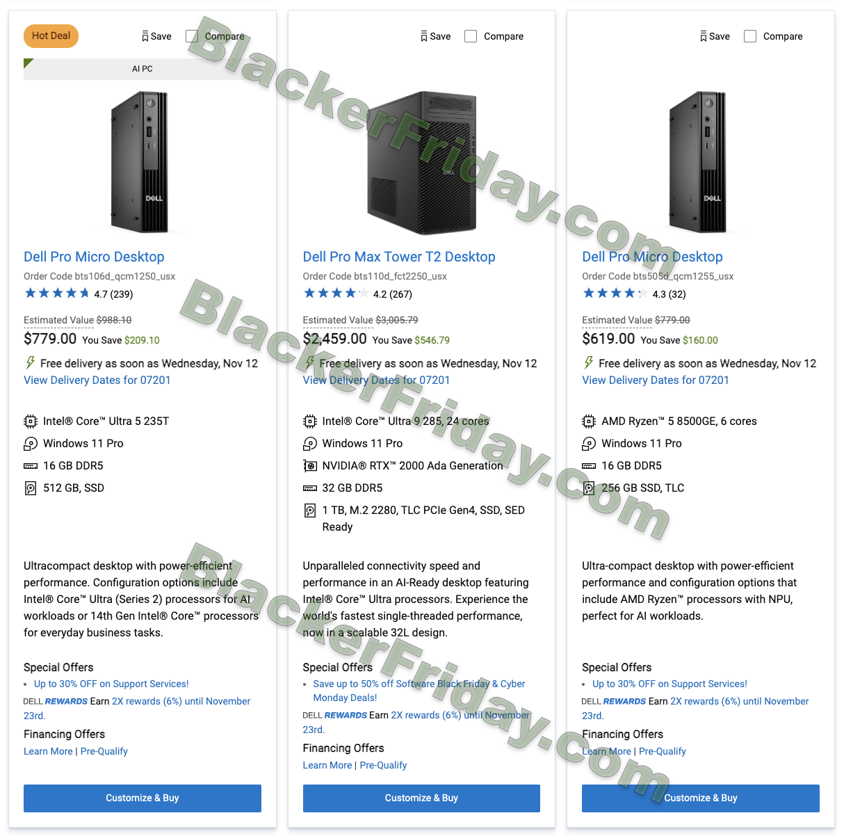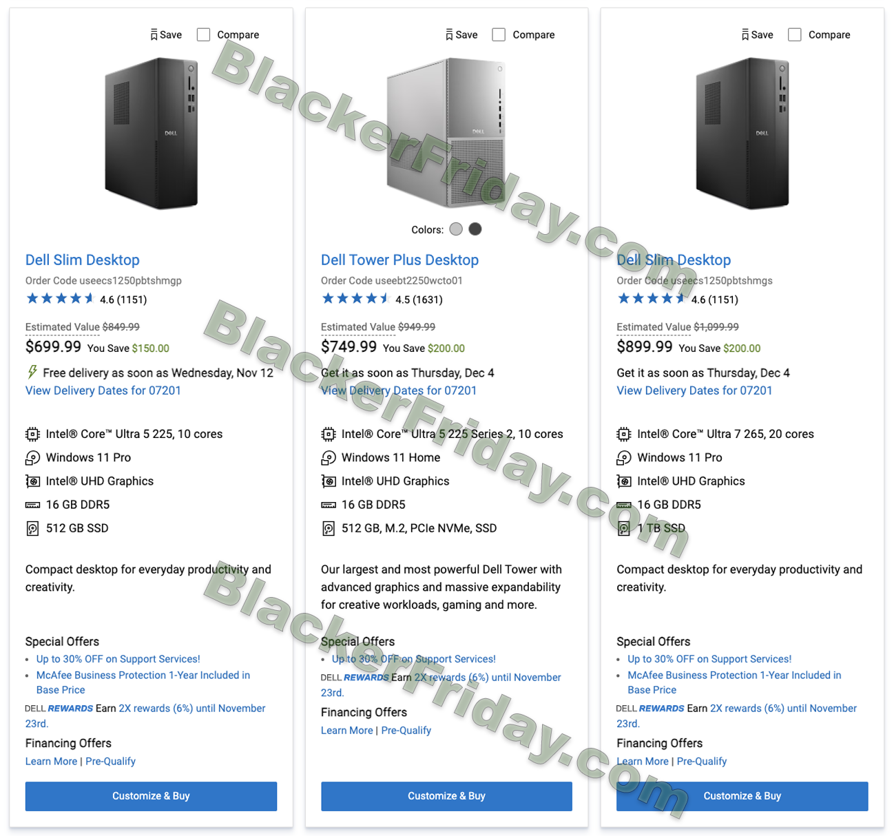 - Dell Slim Desktop – Intel Core Ultra 5, 16 GB RAM, 512 GB SSD, $599.99 (Save $150).