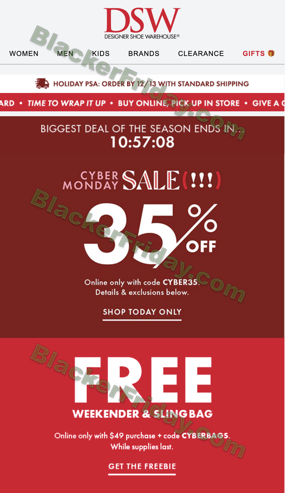 Last year, DSW also ran a gift-with-purchase promotion, where spending at least $49 earned a free Weekender & Sling Bag using a separate promo code. Offers like this tend to return in similar form, although the specific free item might change for 2025.