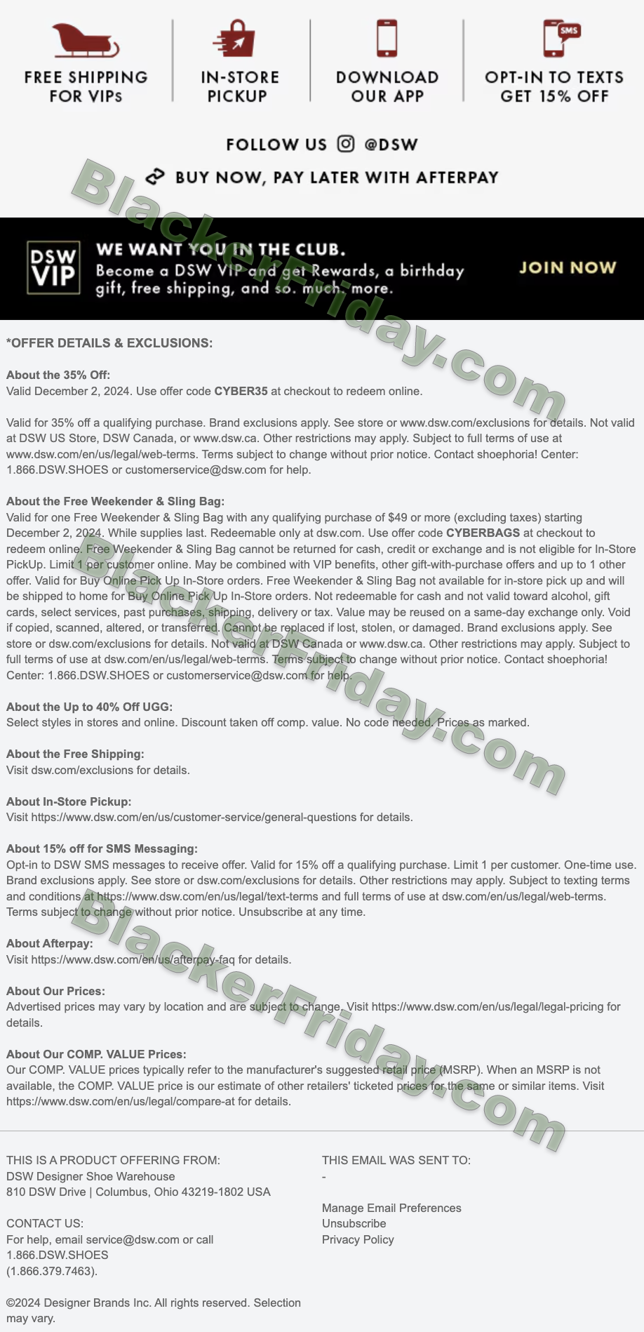 We’re expecting DSW to bring back a sitewide discount of around 35% off when using a promo code, much like last year’s CYBER35 offer, when shopping dsw.com. There should also be brand-specific discounts, particularly for UGG boots, which were up to 40% off last year. It’s been a consistent feature of their Cyber Monday events and typically applies to most full-priced and sale items, with some brand exclusions.