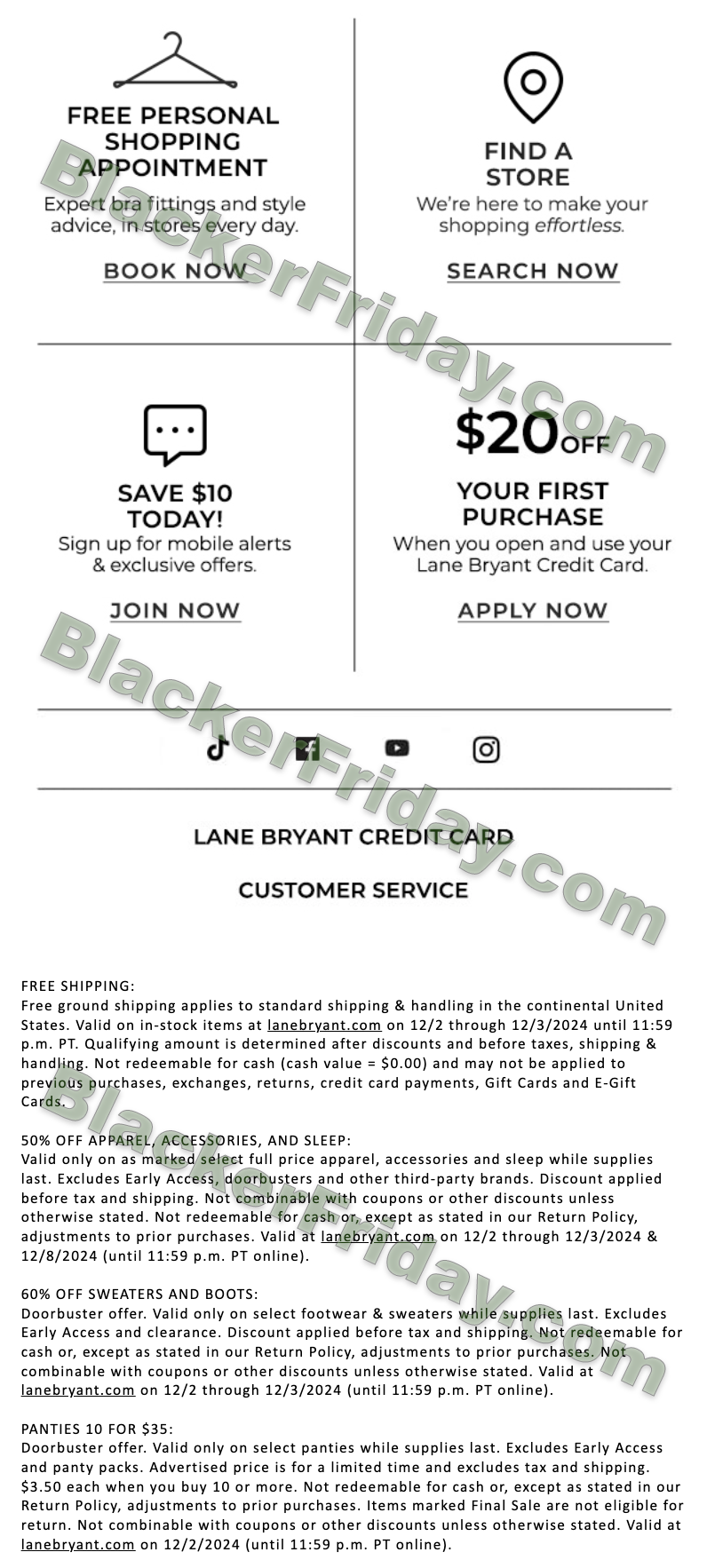 Lane Bryant also provides extra benefits for credit card and loyalty program members, which may still apply during Cyber Monday 2025: