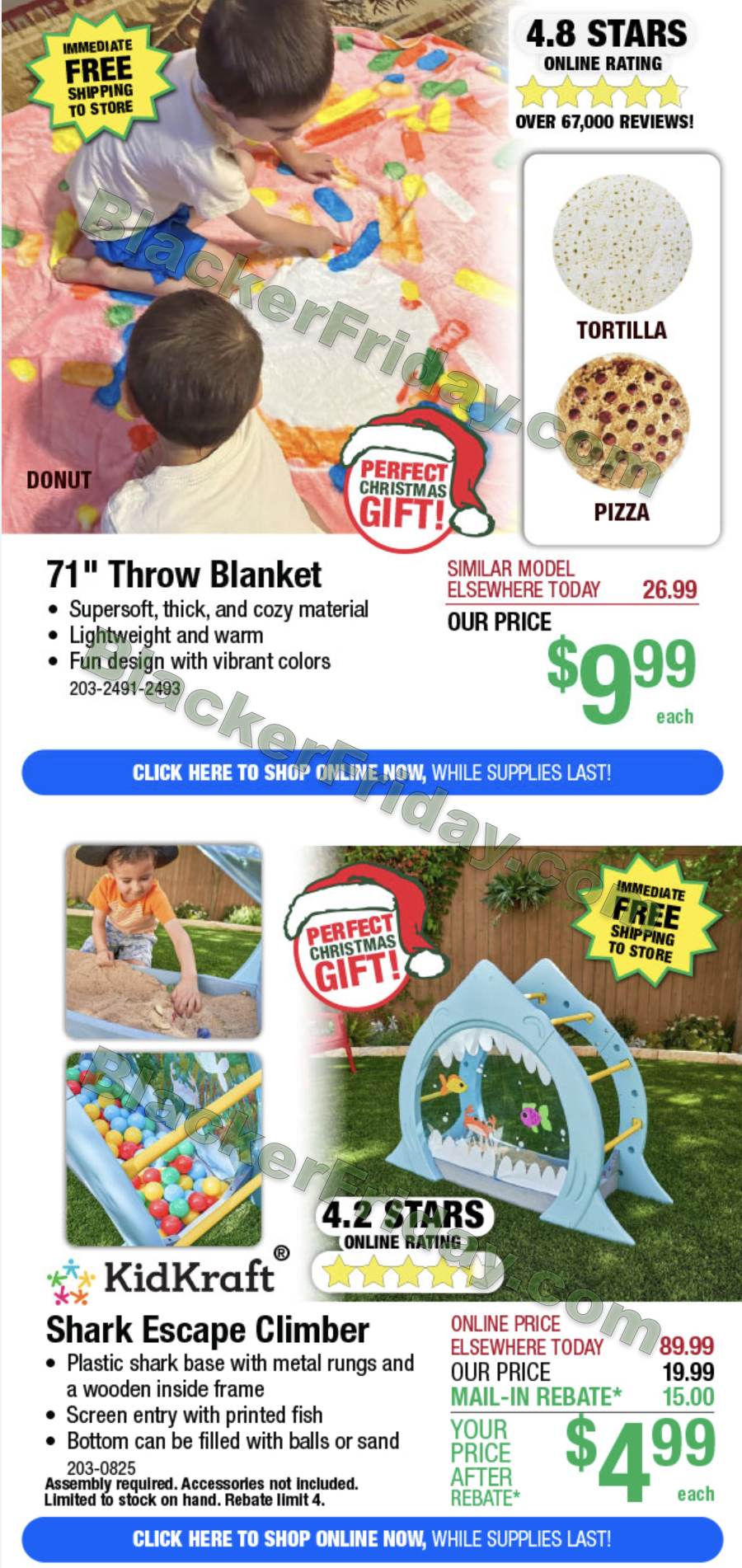 You’ll also find gifts aimed at all ages. A 36” 2-in-1 Game Table was $49.99 last year, and it’s the kind of thing that makes a good family gift. Novelty items, tool-themed stocking stuffers, and flashlight sets are typically part of the ad as well.