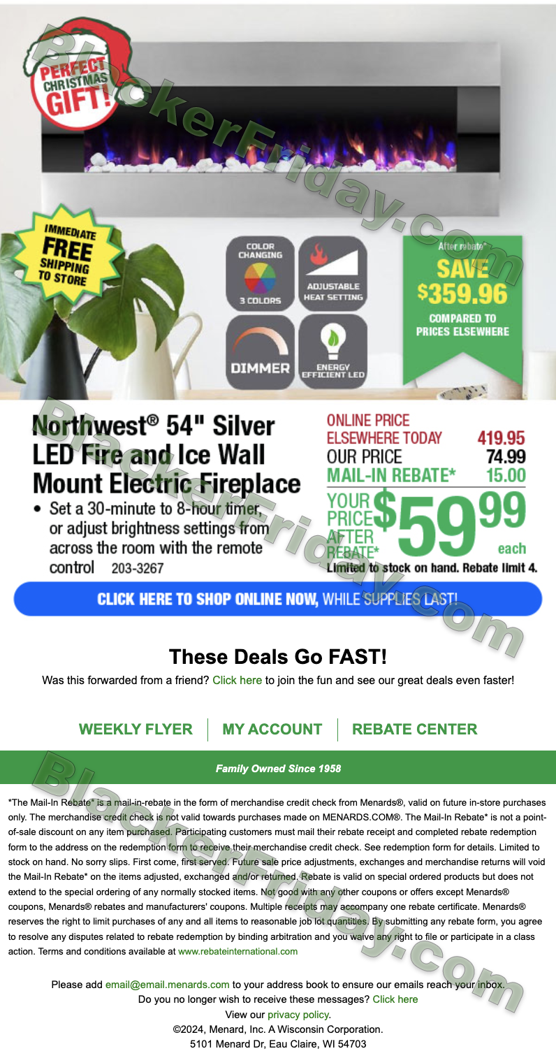Menards isn’t known for offering the deepest Black Friday discounts compared to electronics-focused retailers, but they do knock a decent amount off a wide range of items. Some deals are straightforward sale prices, while others are based on a mail-in rebate. The rebates can be a little inconvenient, but they do bring the final price down significantly if you follow through.