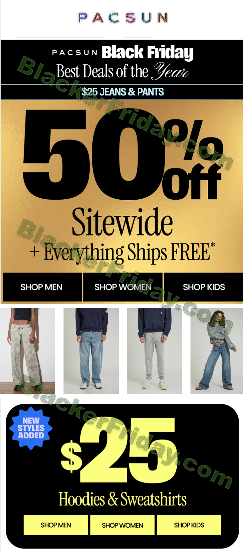 PacSun typically includes a broad range of clothing and footwear in its holiday sales. Based on past patterns, you can expect: