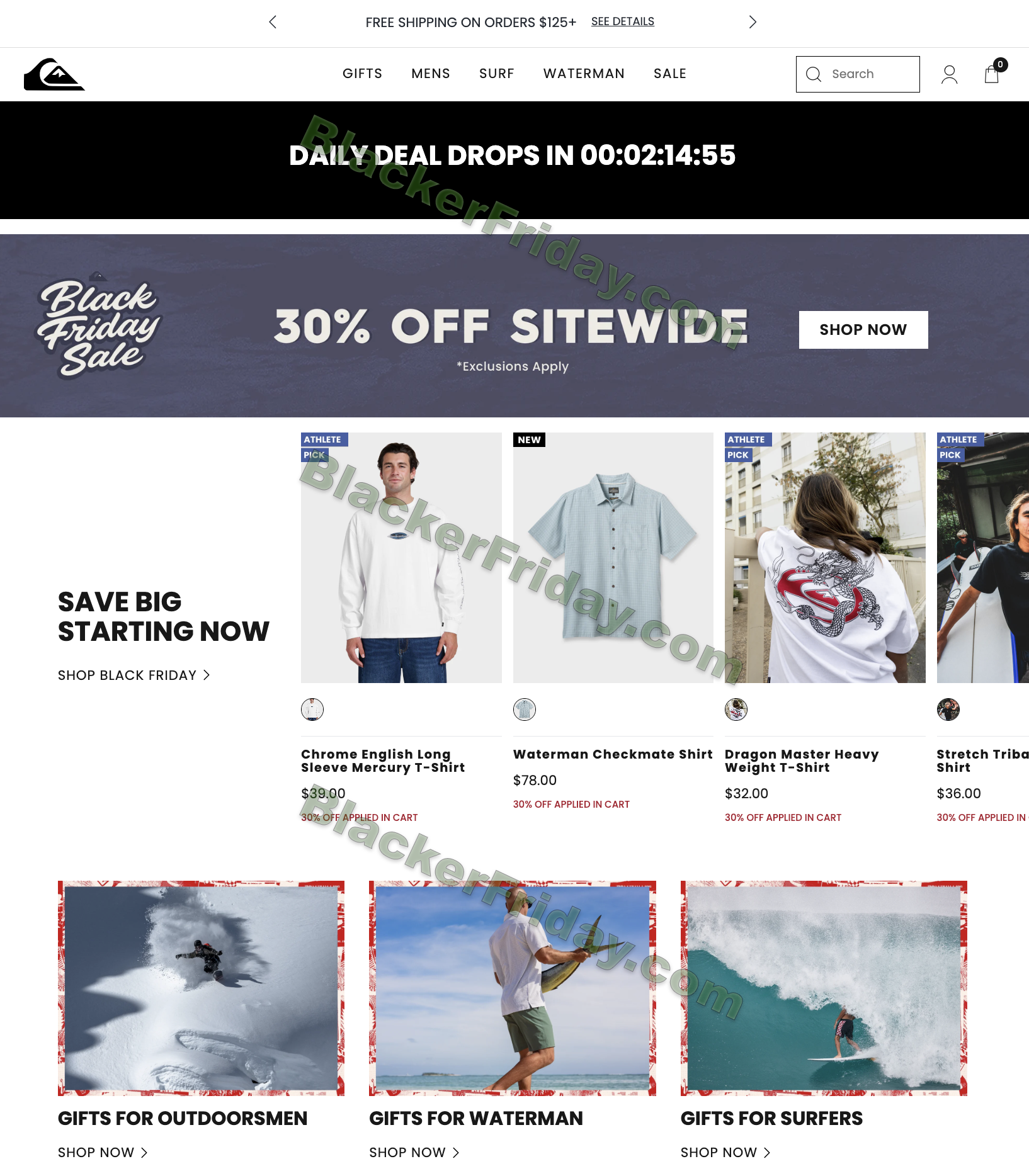 Quiksilver’s Black Friday sale runs Monday, November 24 through Saturday, November 29, 2025. The sale is available online at quiksilver.com.