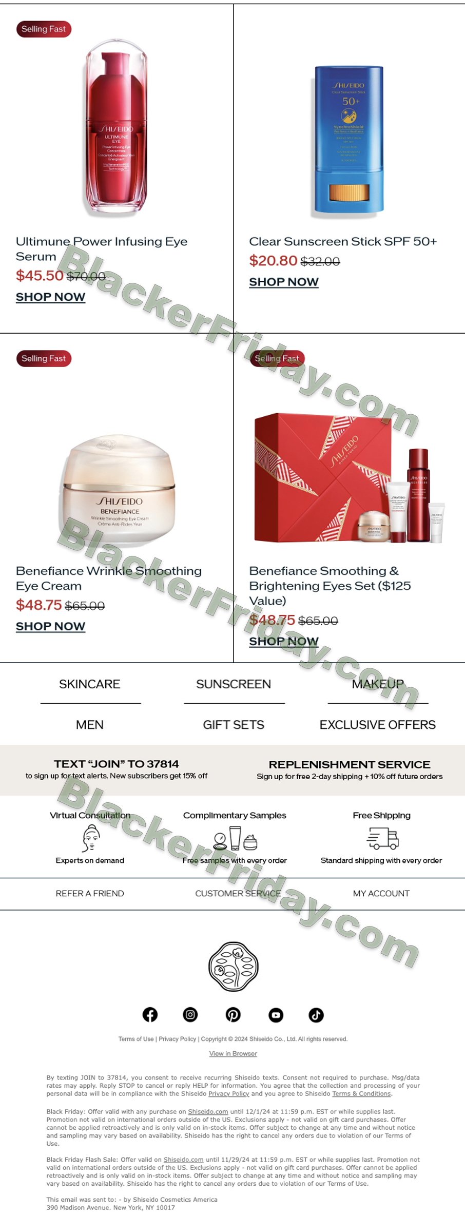How does last year’s Black Friday deals compare to this year’s deals? Find out and compare by following the links below to view some of Shiseido’s previous Black Friday ads.